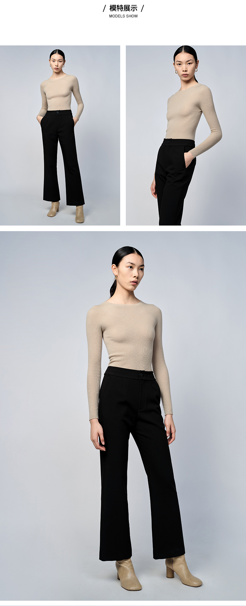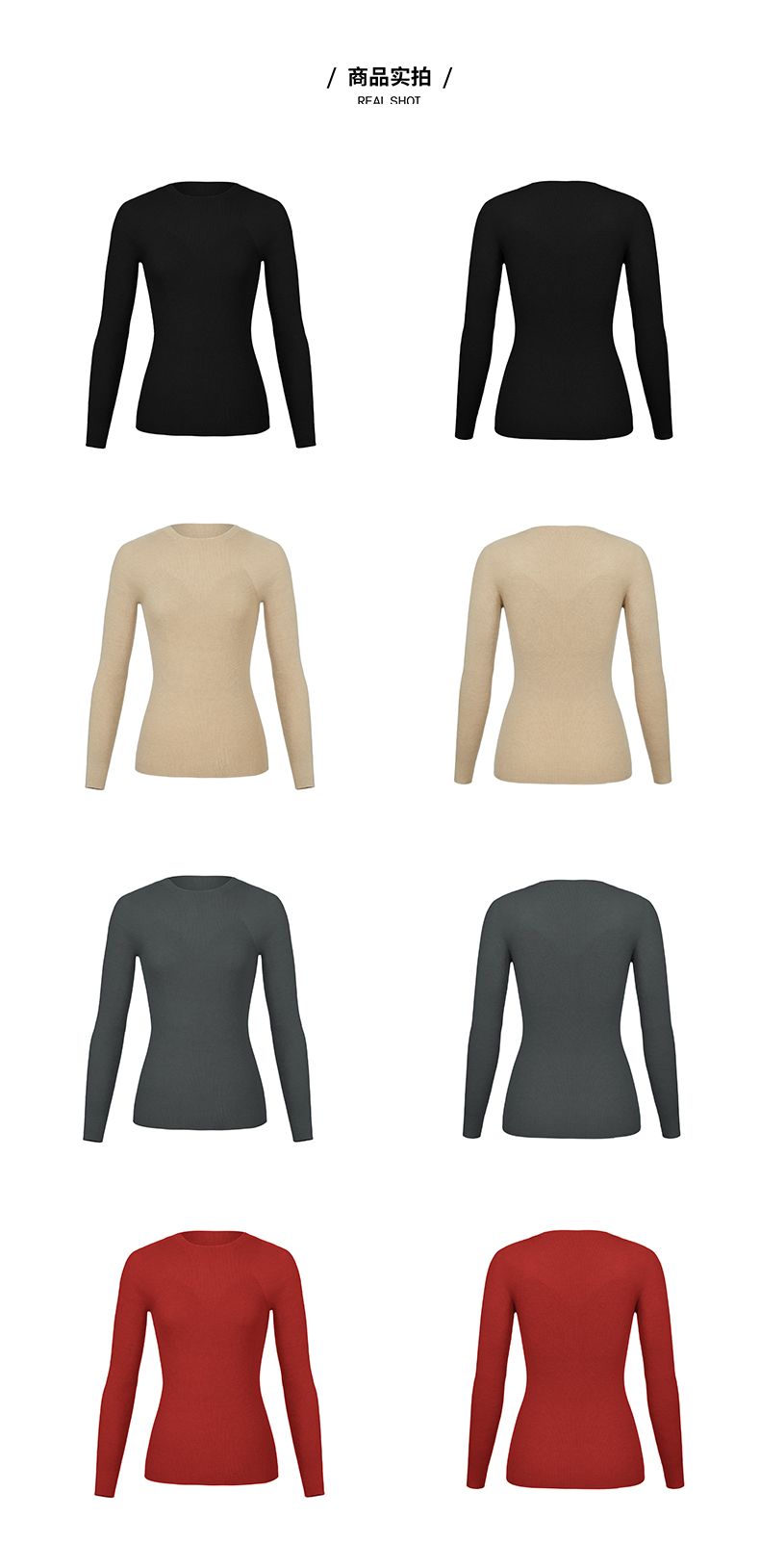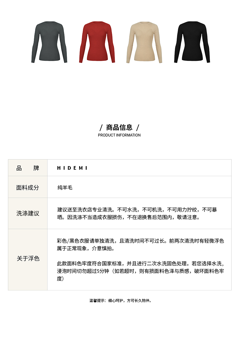 HIDEMI 美利奴超细羊毛无缝一体式云朵圆领打底上衣 燕麦色/锡器灰/浆果红/黑色