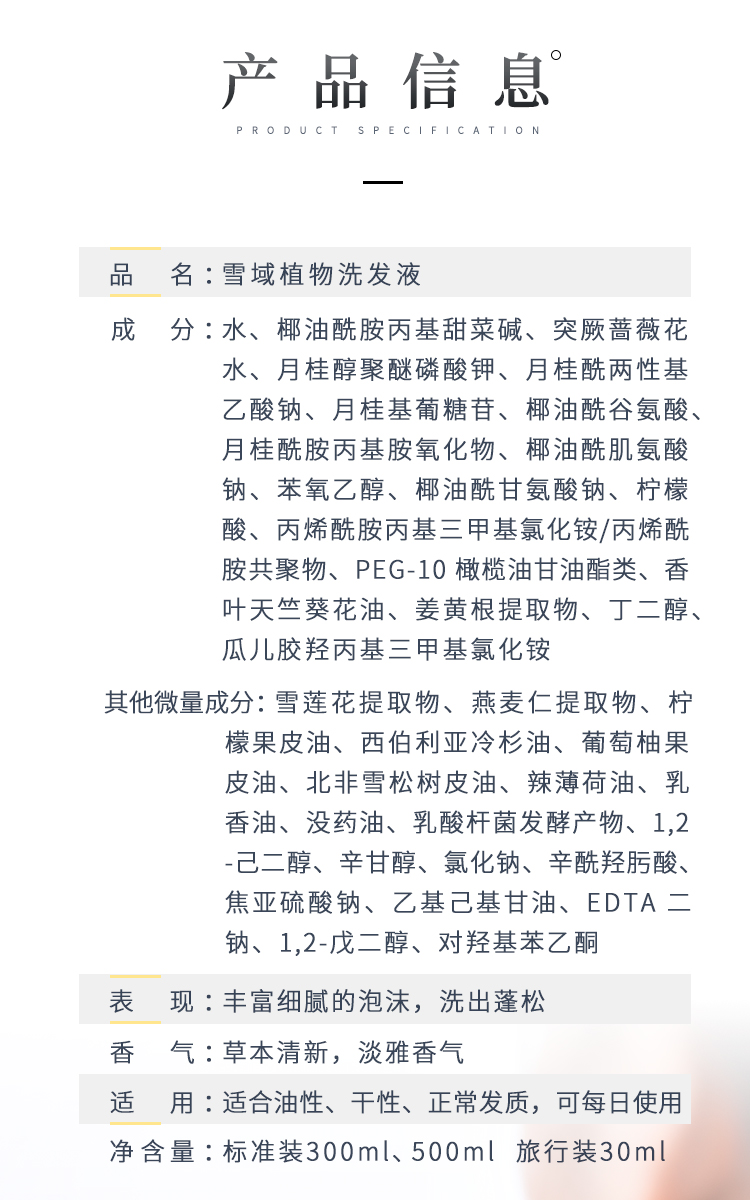 【蓬松头发】雪域植物洗发水 控油蓬松 植物精油