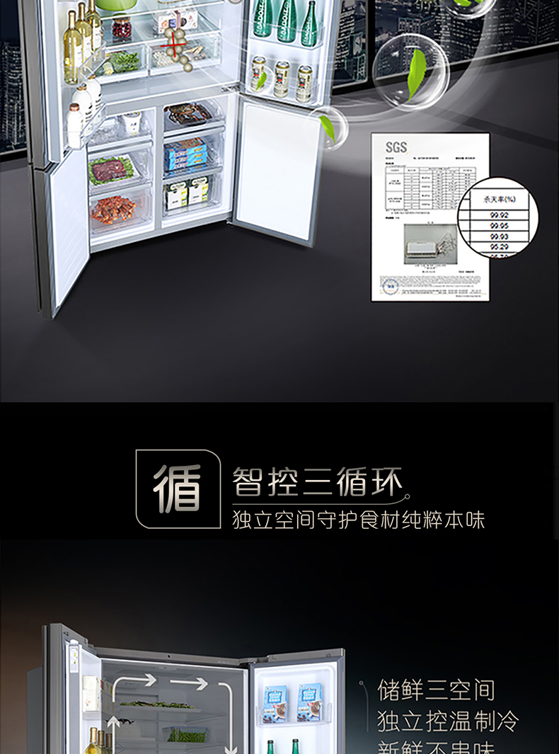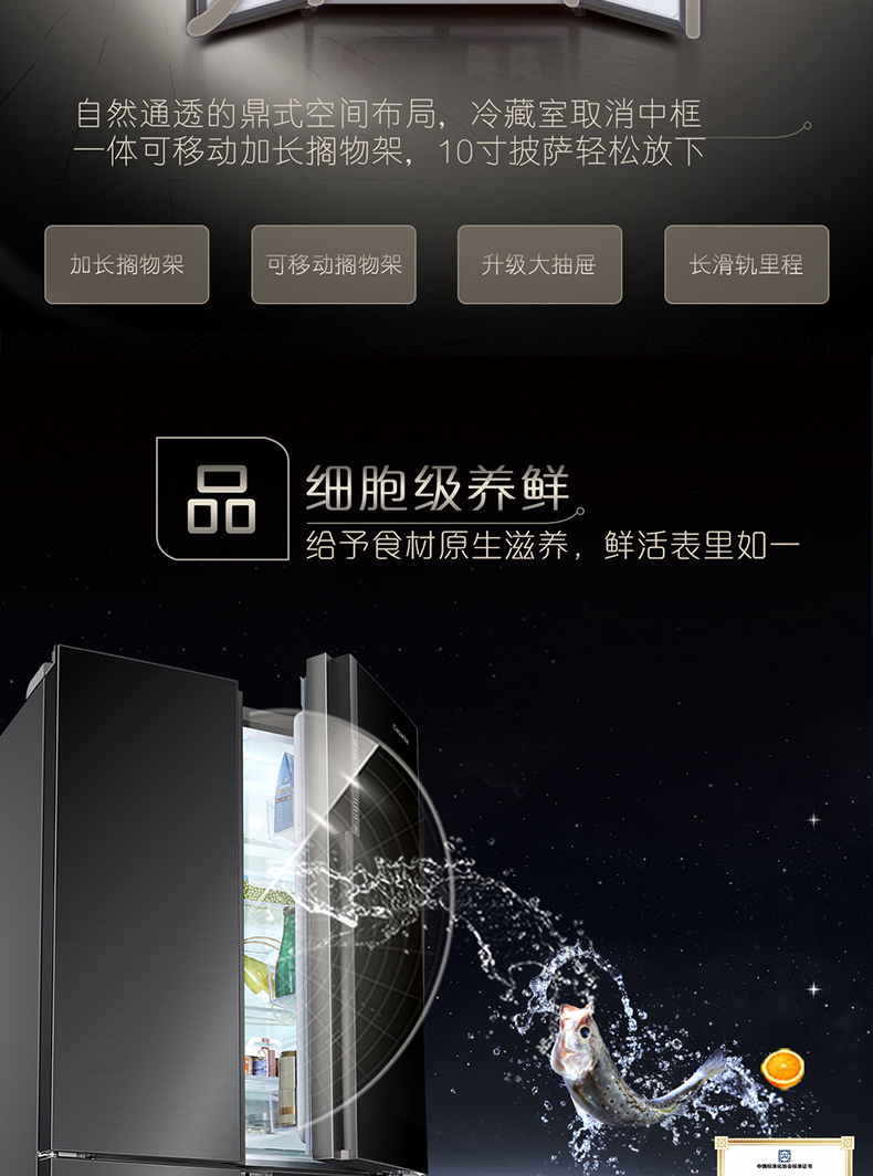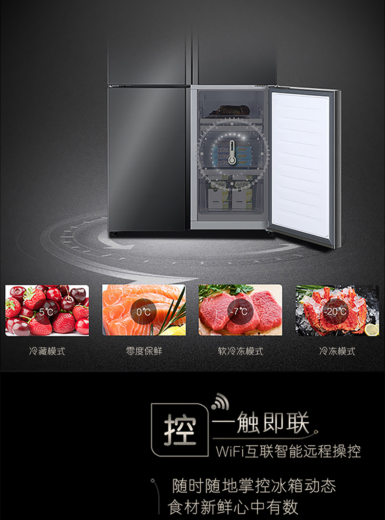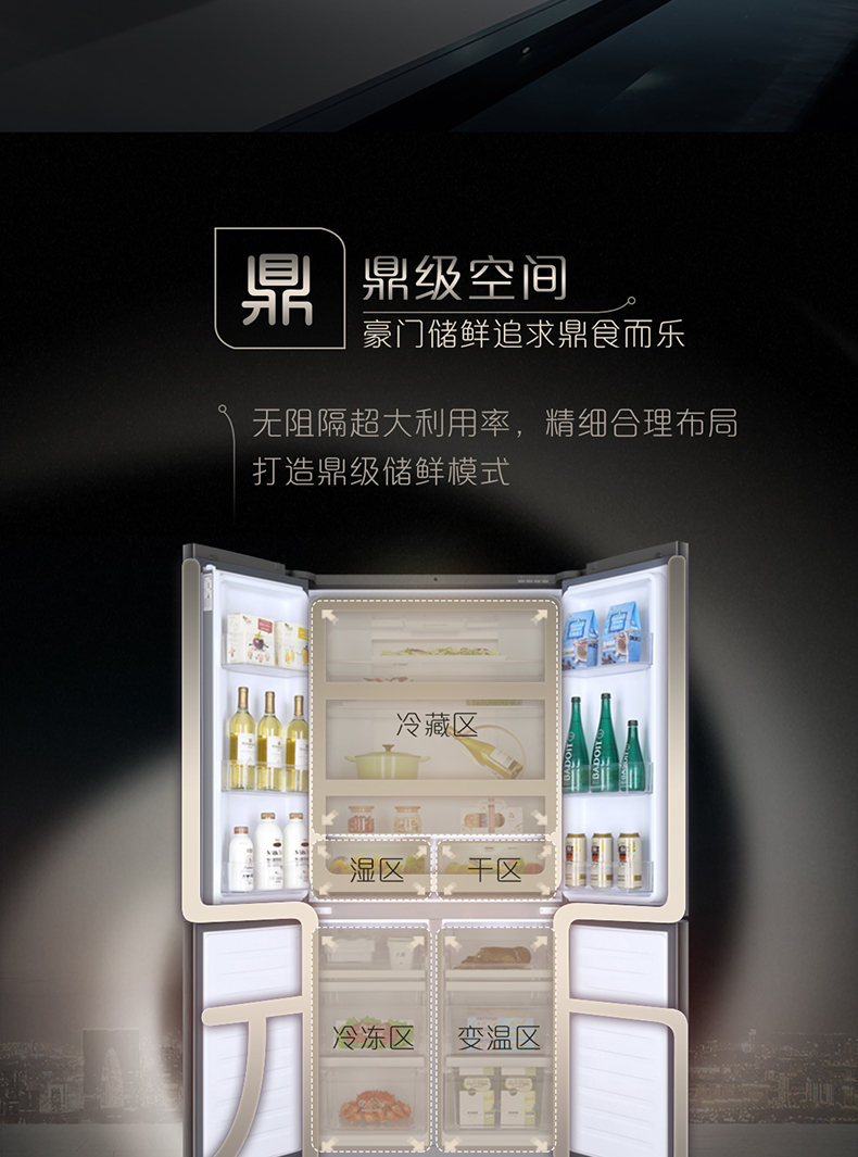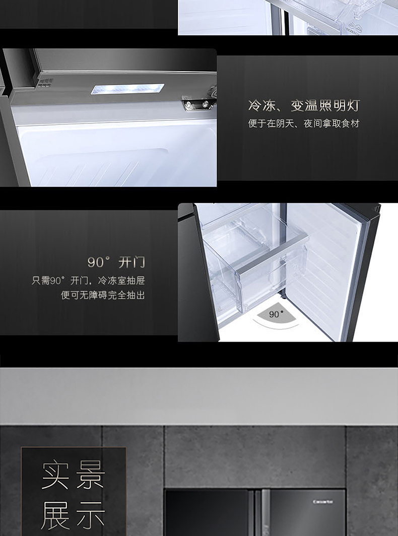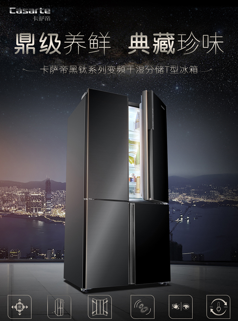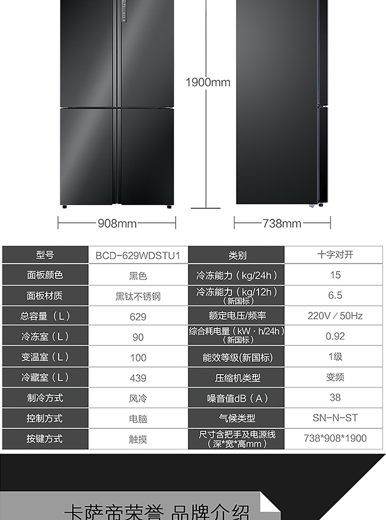 【黑钛】Casarte/卡萨帝629L大容量十字对开四门变频无霜制冰冰箱