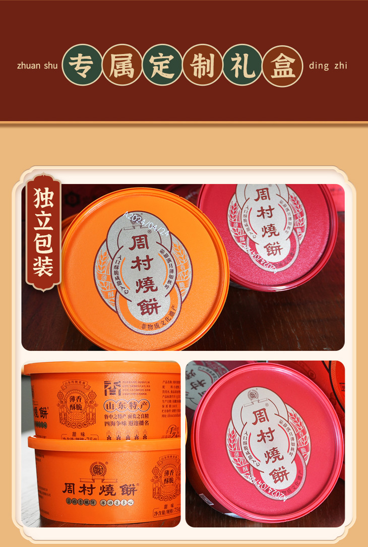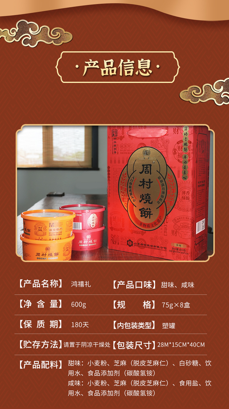 人气山东淄博特产手工周村牌周村烧饼美滋八珍礼55gX8盒甜咸各半