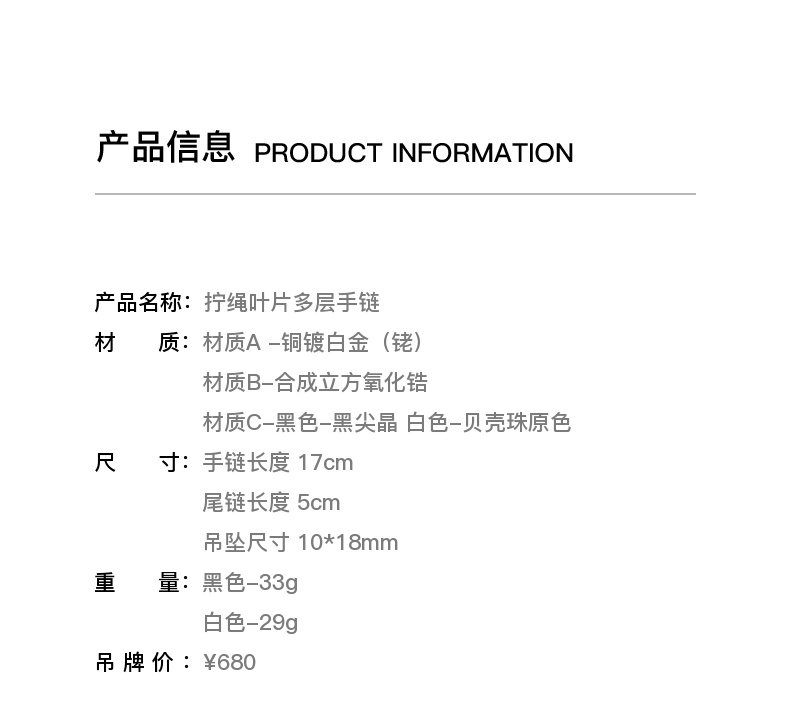 [福利价]lost in echo2024夏季新款原创拧绳合果芋叶片多层珍珠手链手串女
