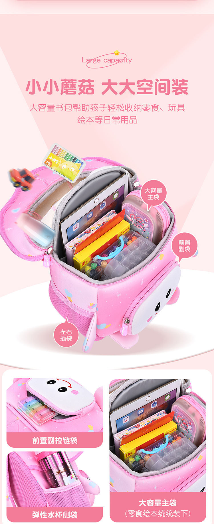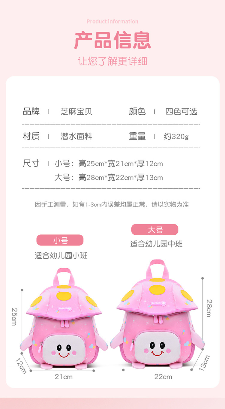 新款幼儿园书包男宝可爱蘑菇包潜水料儿童书包女孩背包迷你小包包开学季学习用品新款书包补习袋