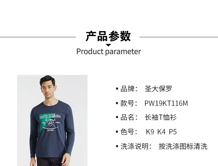 【直发】圣大保罗 秋冬新品男士长袖棉T-PW19KT116M
