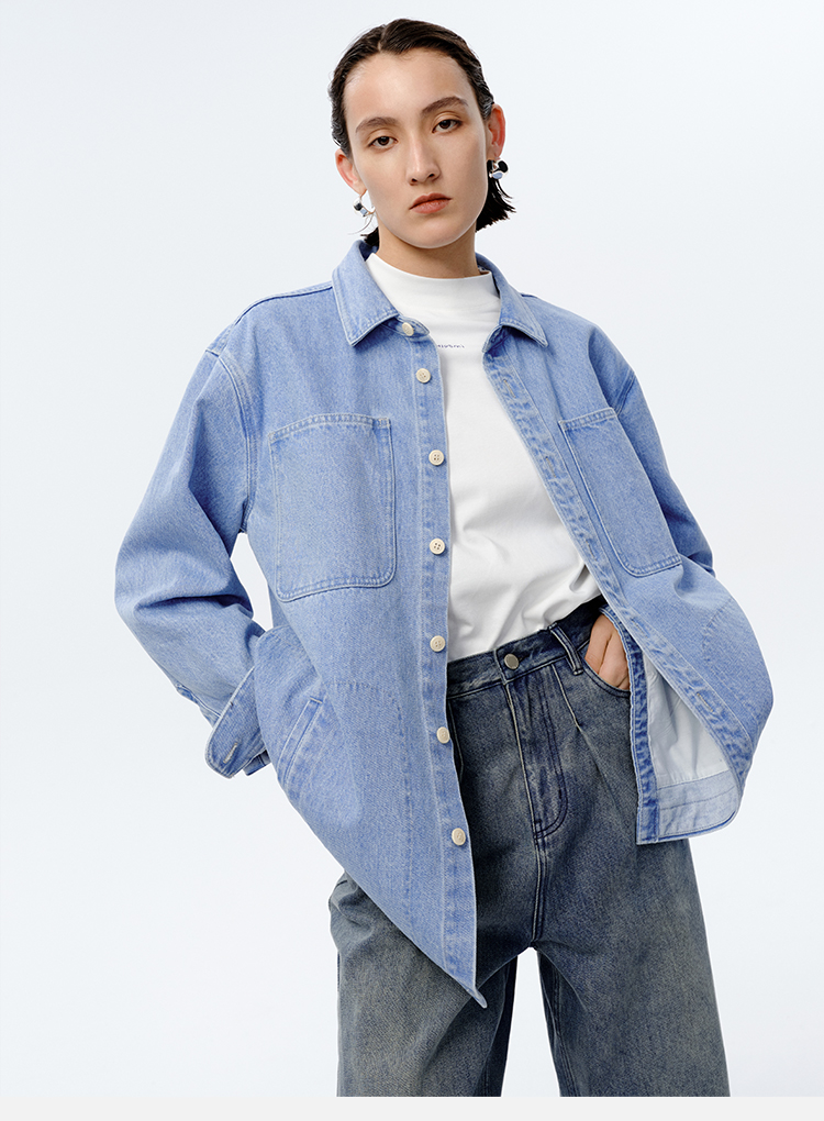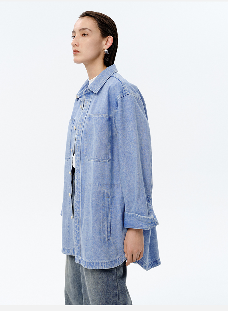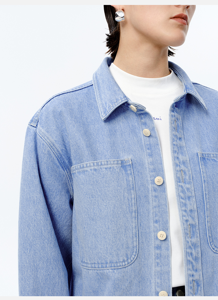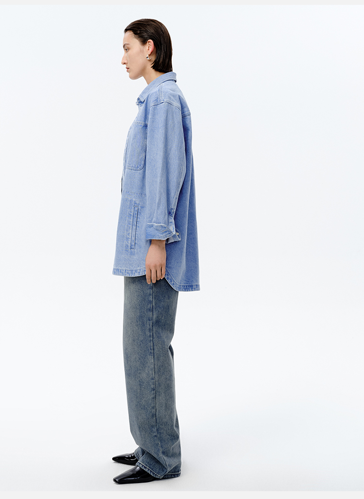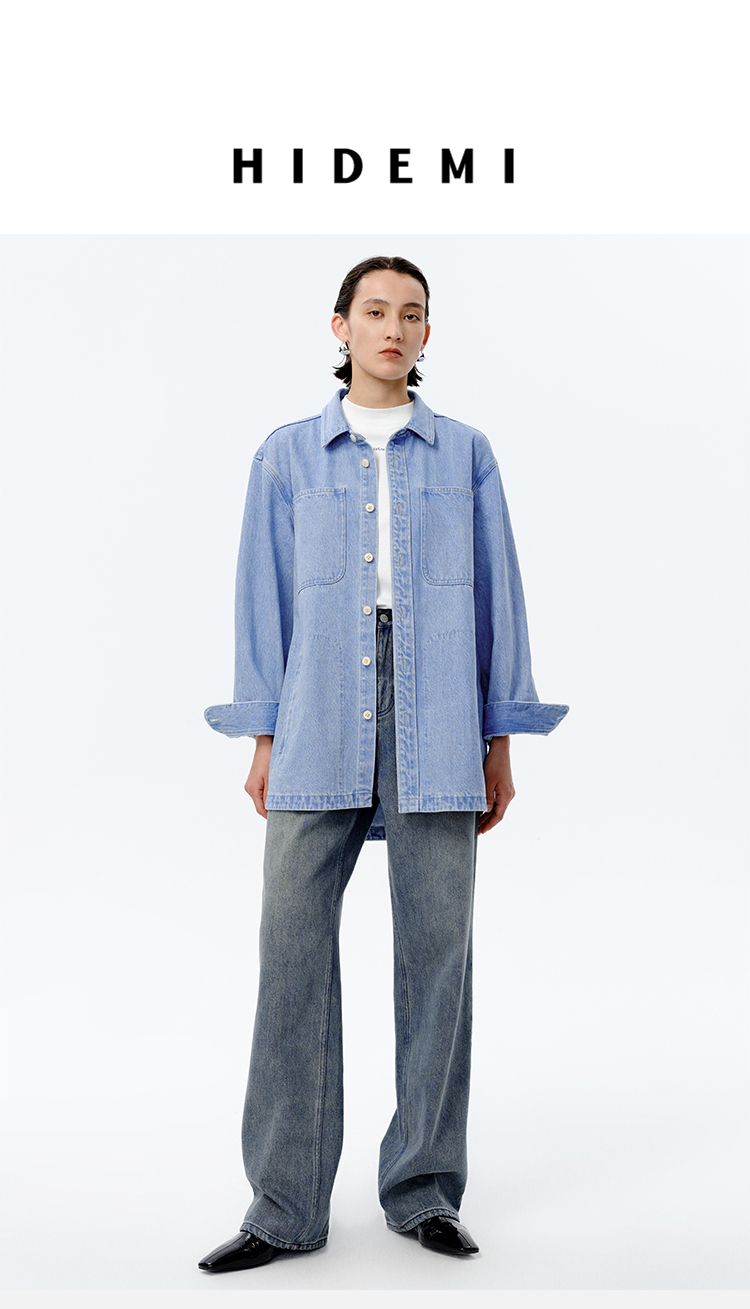 HIDEMI 可再生丹宁环保系列水洗口袋廓形牛仔衬衫外套