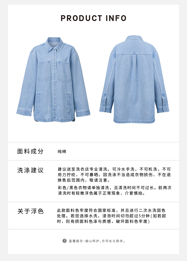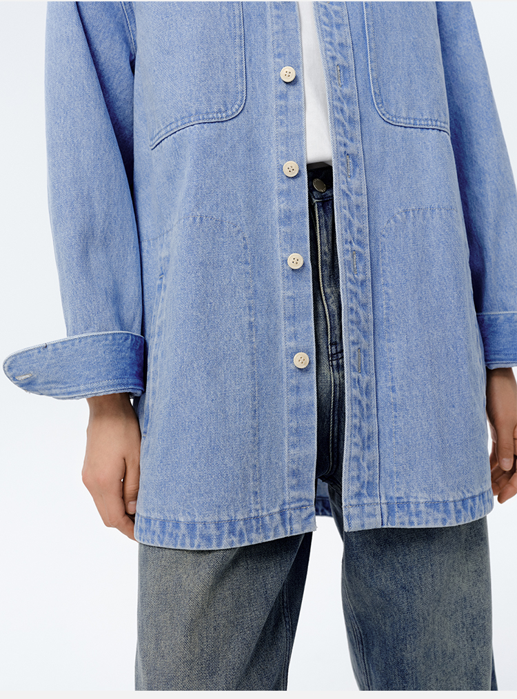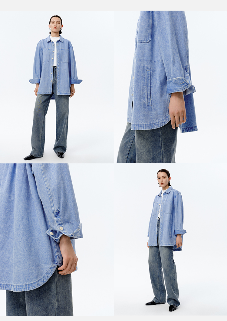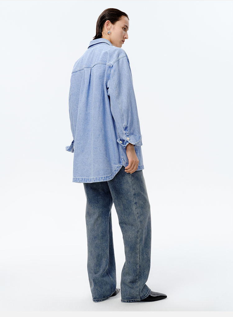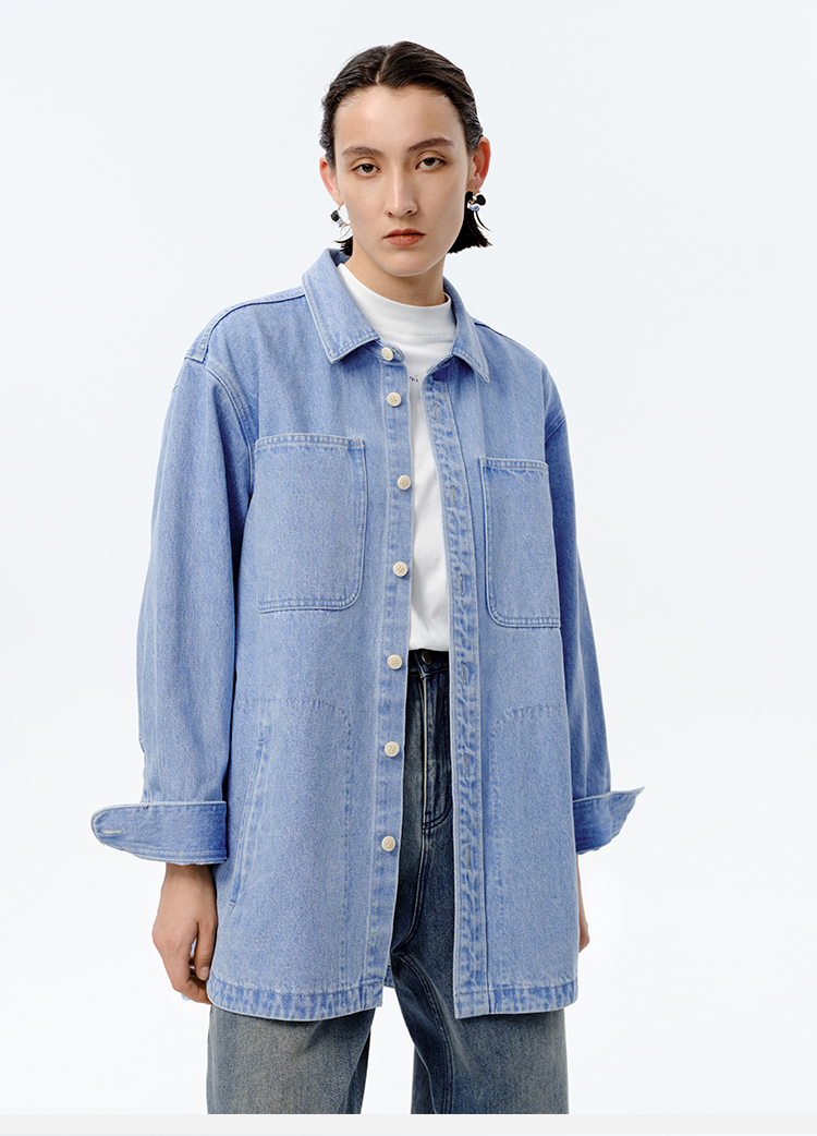 HIDEMI 可再生丹宁环保系列水洗口袋廓形牛仔衬衫外套