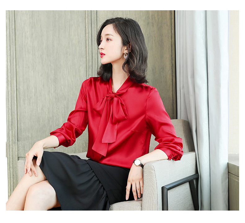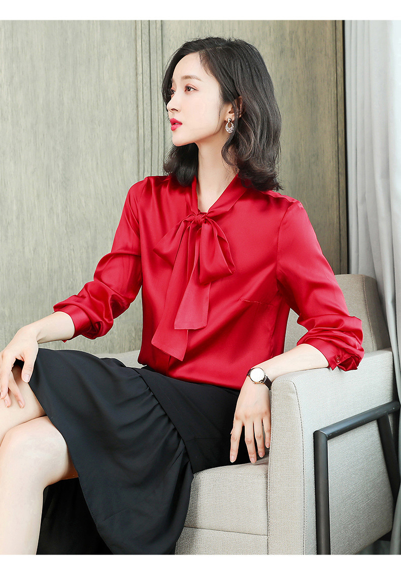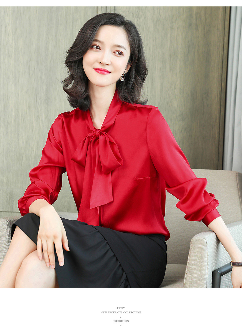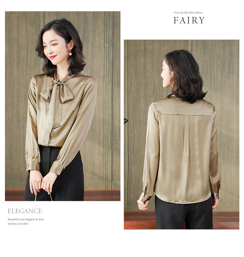 气质真丝衬衫女长袖秋冬新款设计感小众飘带高端桑蚕丝上衣