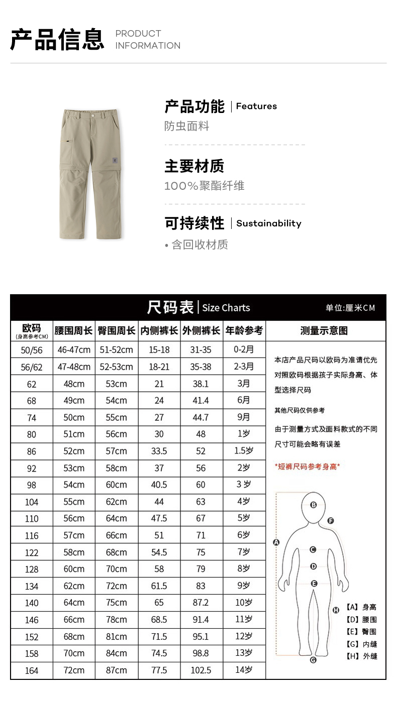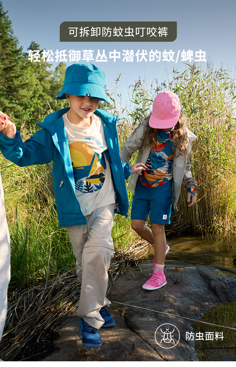 芬兰Reima2025春夏新款男女儿童大童防蚊虫运动可拆卸两穿裤子