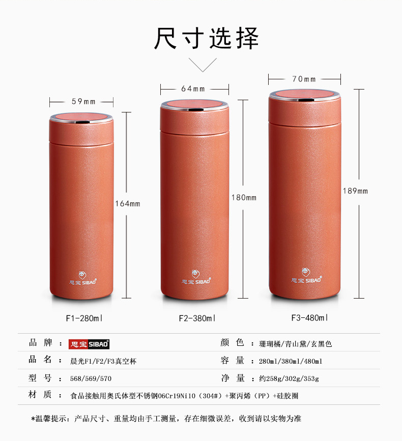 思宝官方旗舰店思源B5/B6真空保温杯带盖水杯304不锈钢家用水杯