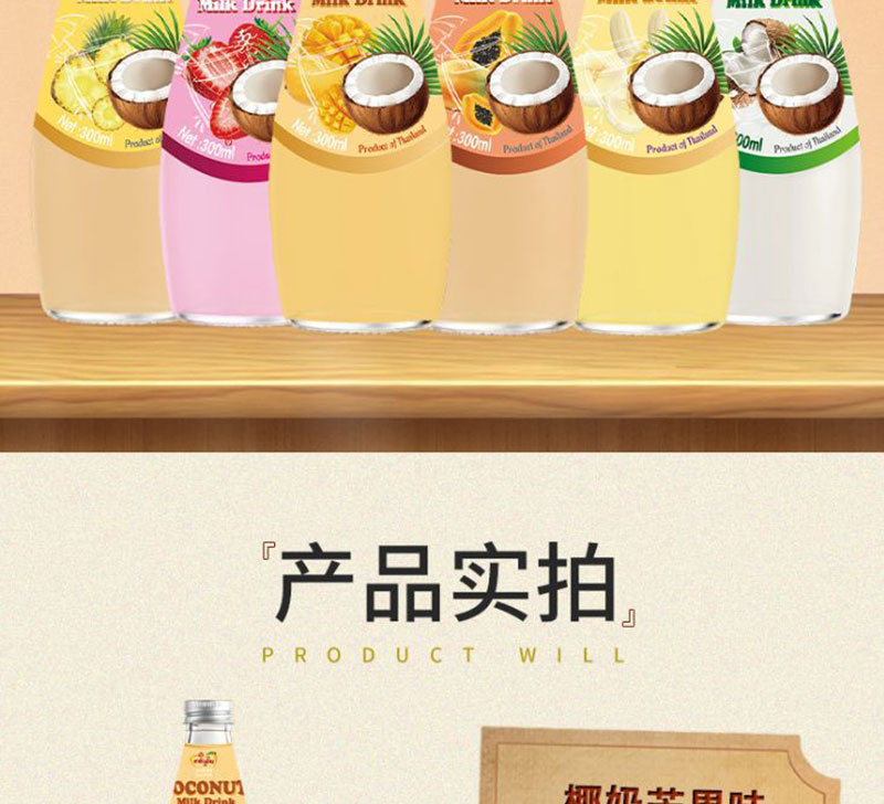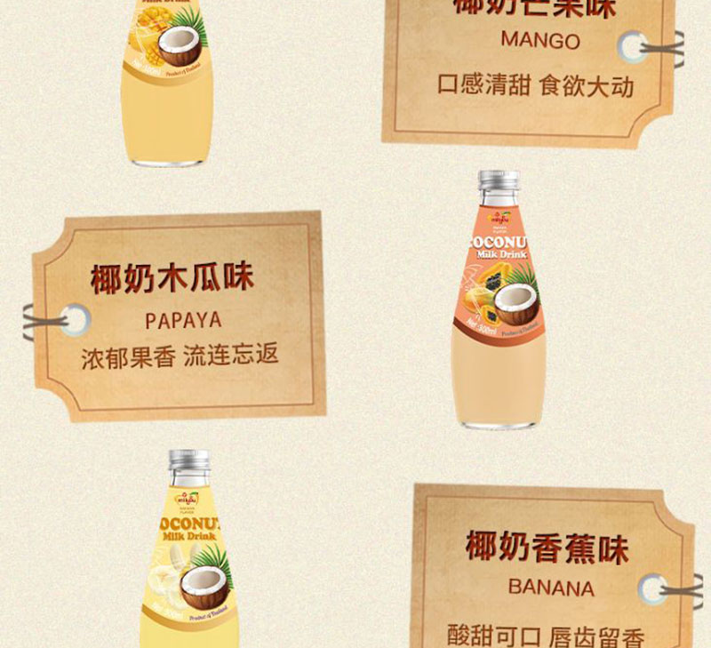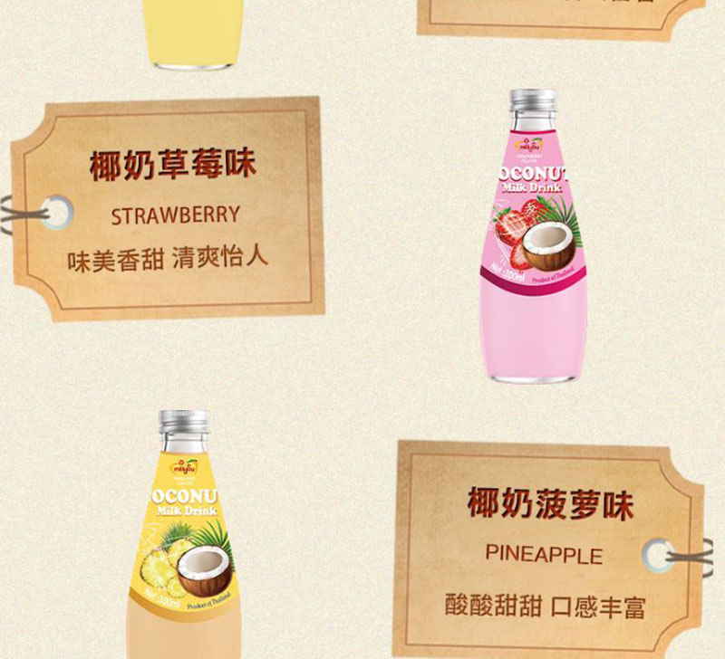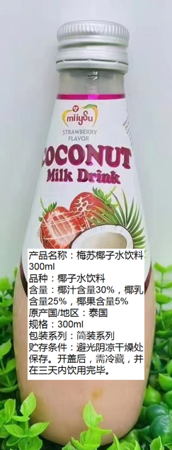 【中欧班列精选】泰国进口梅苏椰子水 网红水果风味饮料椰奶草莓味、椰奶木瓜味、椰奶菠萝味、椰奶椰子味300ml/瓶