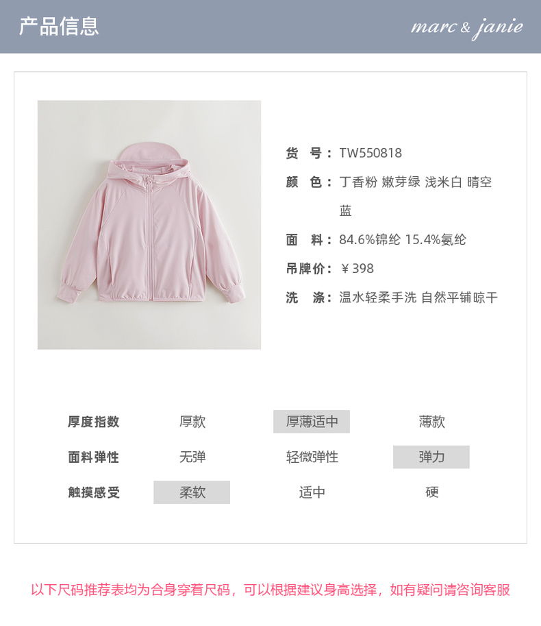 【凉感】马克珍妮男女童网眼透气连帽防晒衣2025年春夏新款550818
