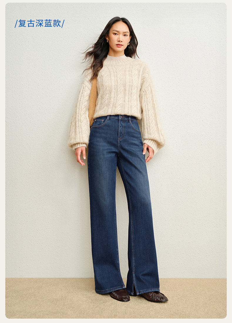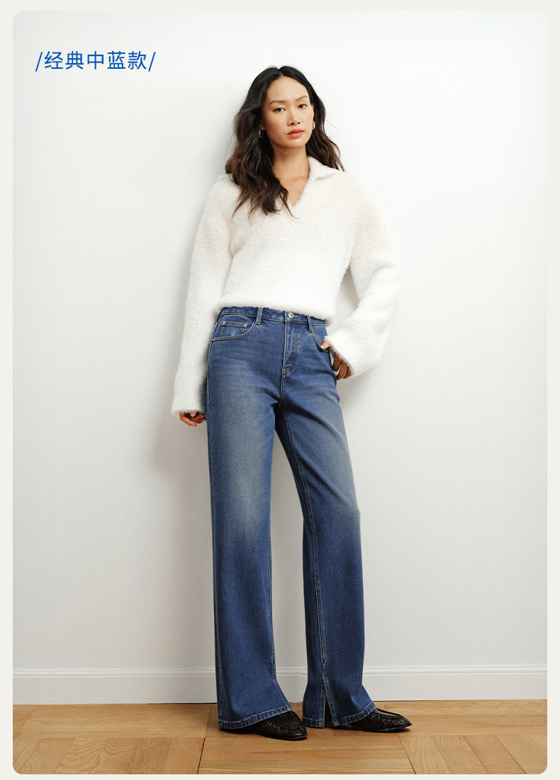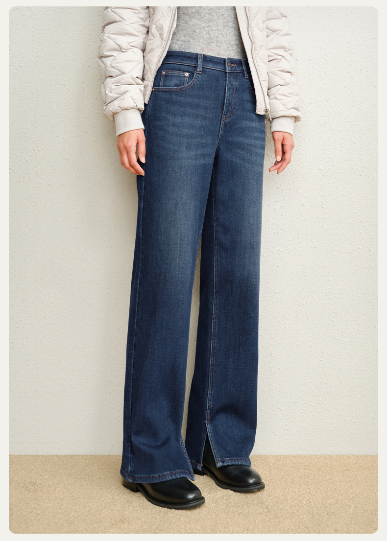 【保暖薯条裤】simplepieces冬新款SPS牛仔裤女小个子磨毛直筒裤