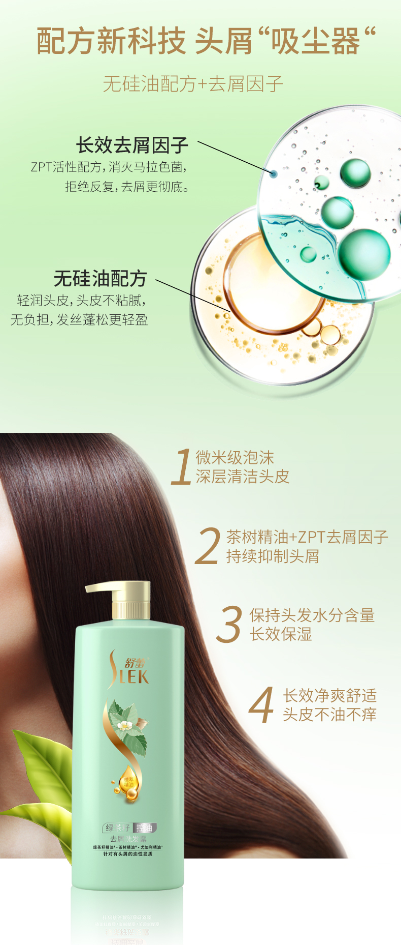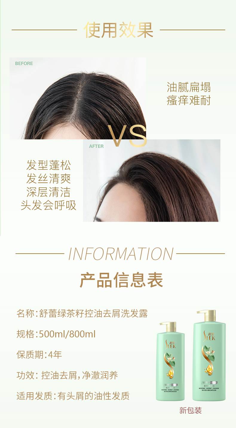 舒蕾绿茶籽控油去屑洗发露500ml/800ml净化头皮