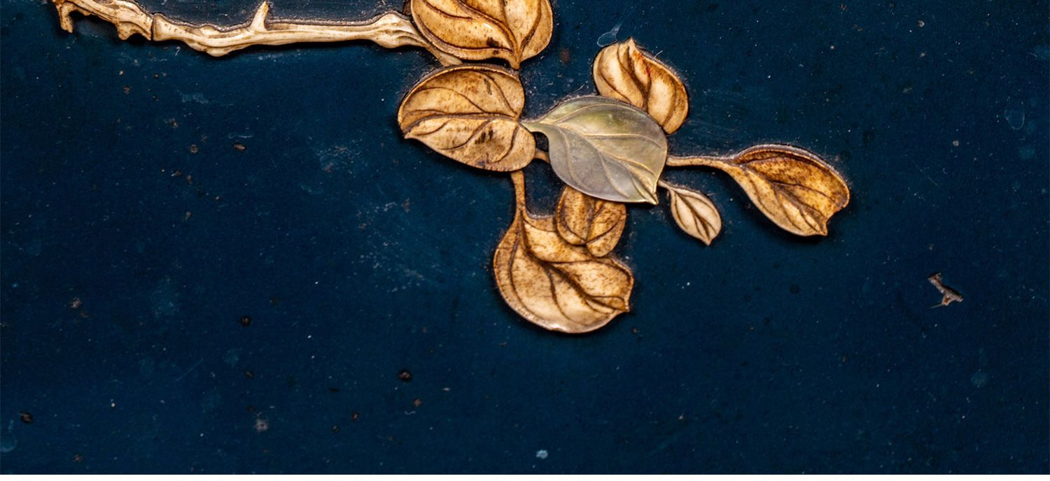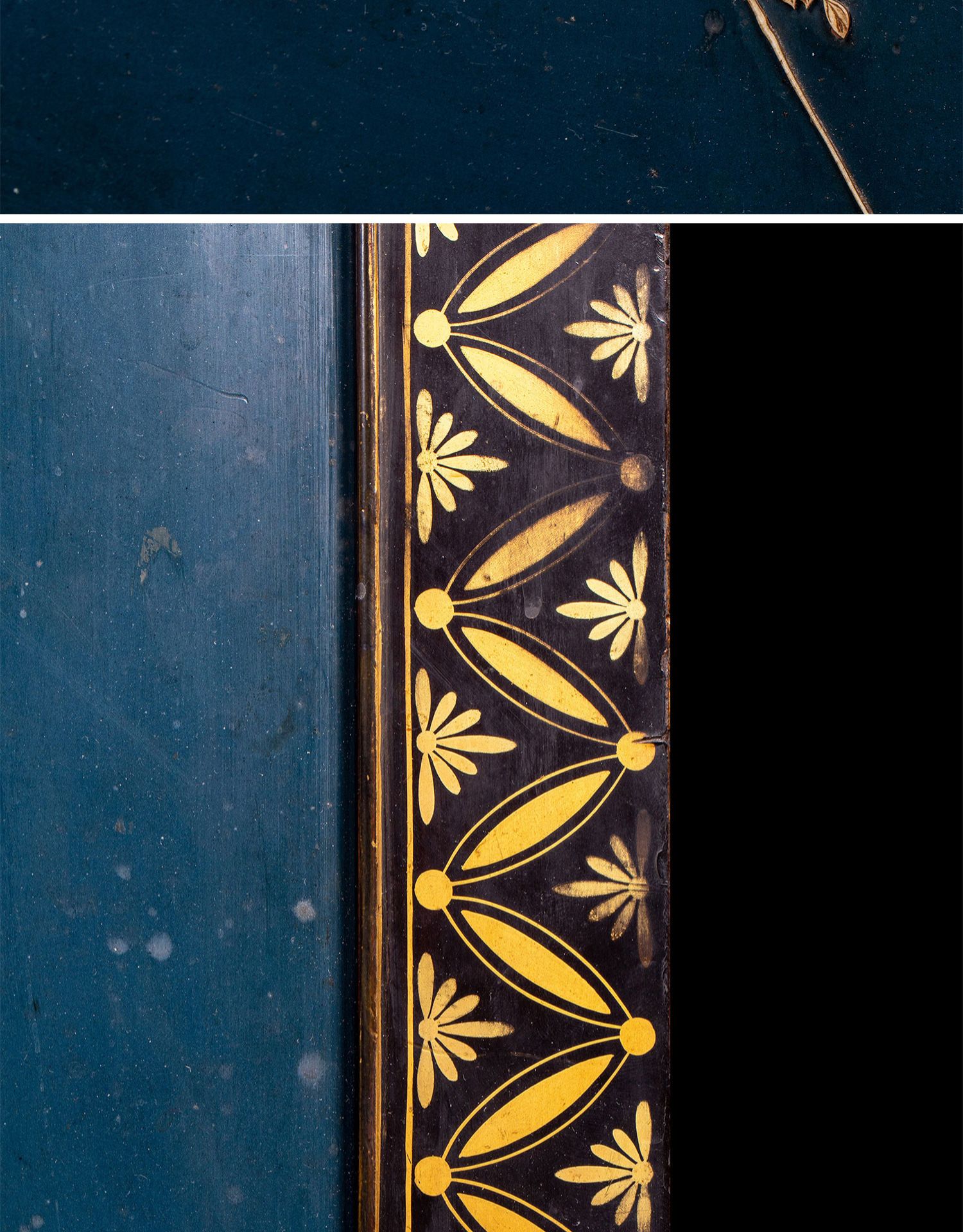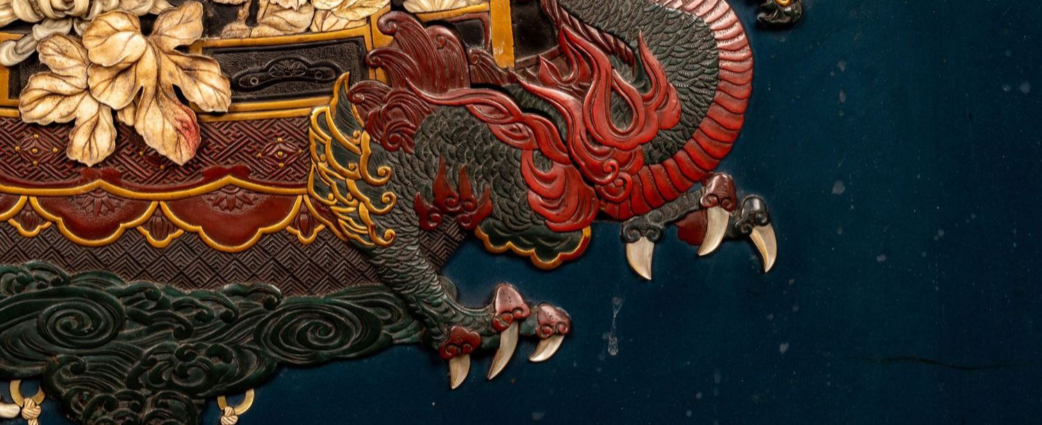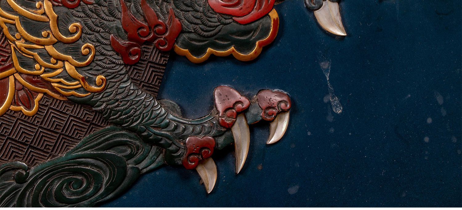 独角鹿西洋古董家居日本明治时期蓝漆地传统博古主题芝山镶嵌画