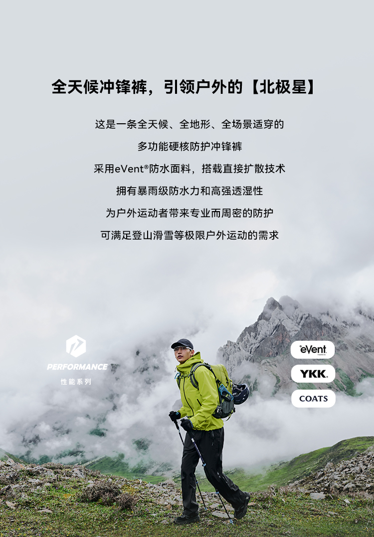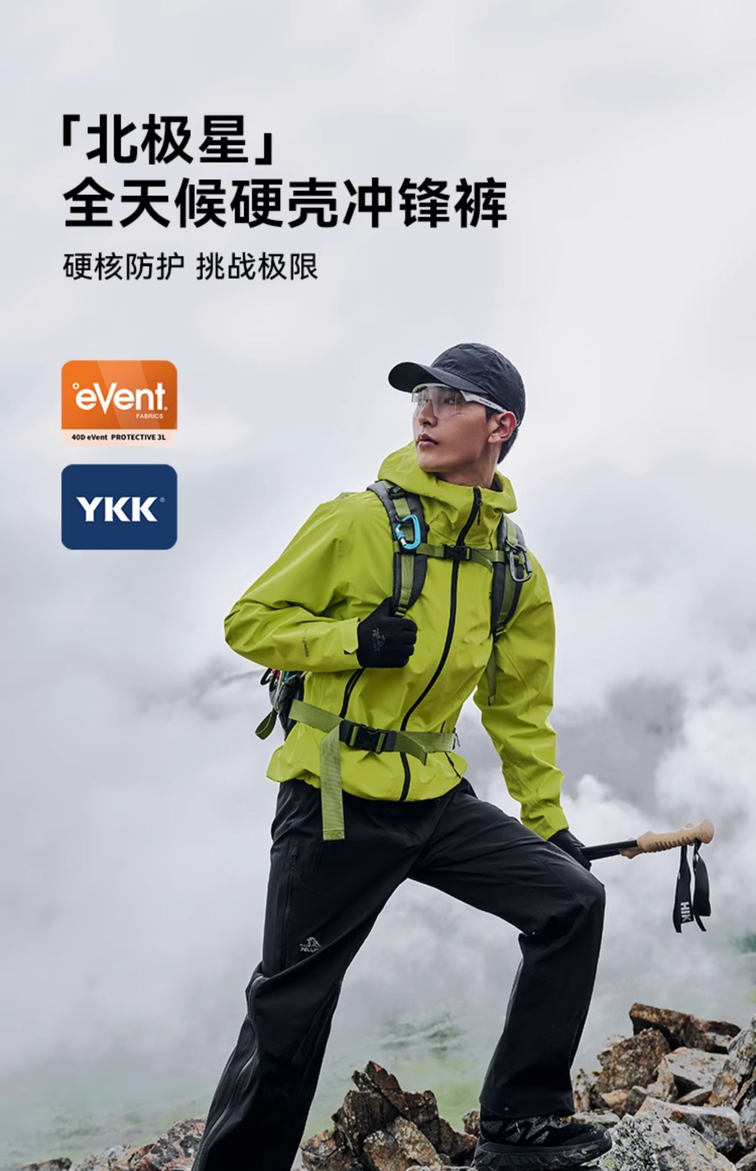 【北极星】伯希和户外硬壳冲锋裤eVent暴雨级防水耐磨徒步登山裤