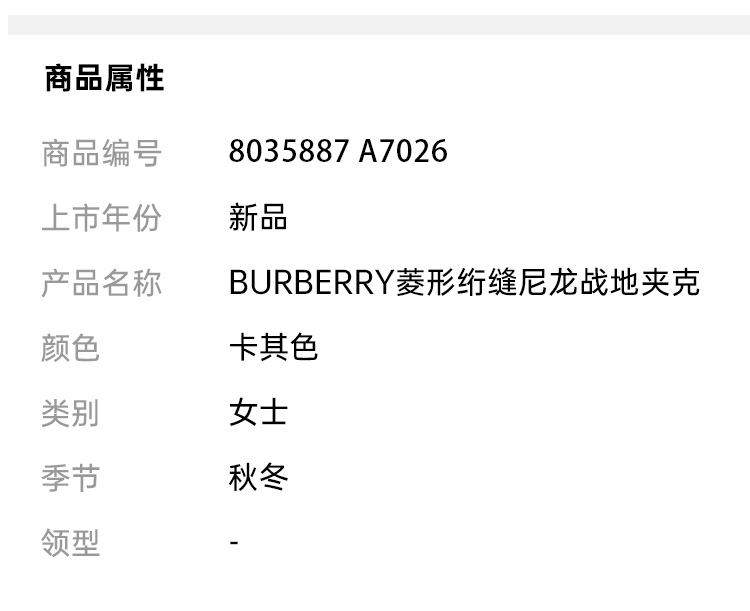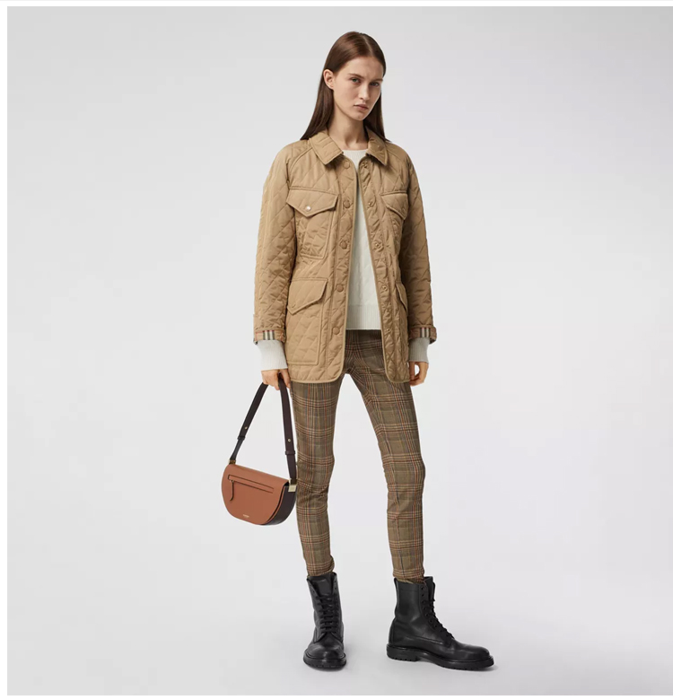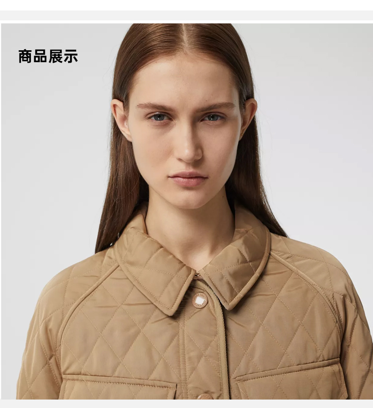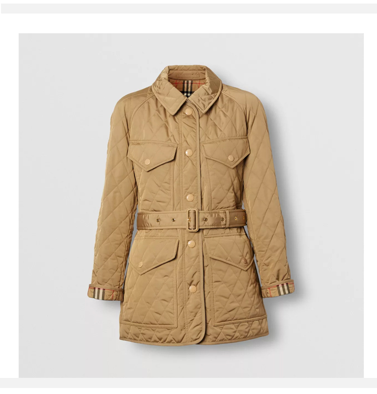 BURBERRY 博柏利 菱形绗缝尼龙帆布战地棉服 女士棉服 卡其色 8035887 A7026