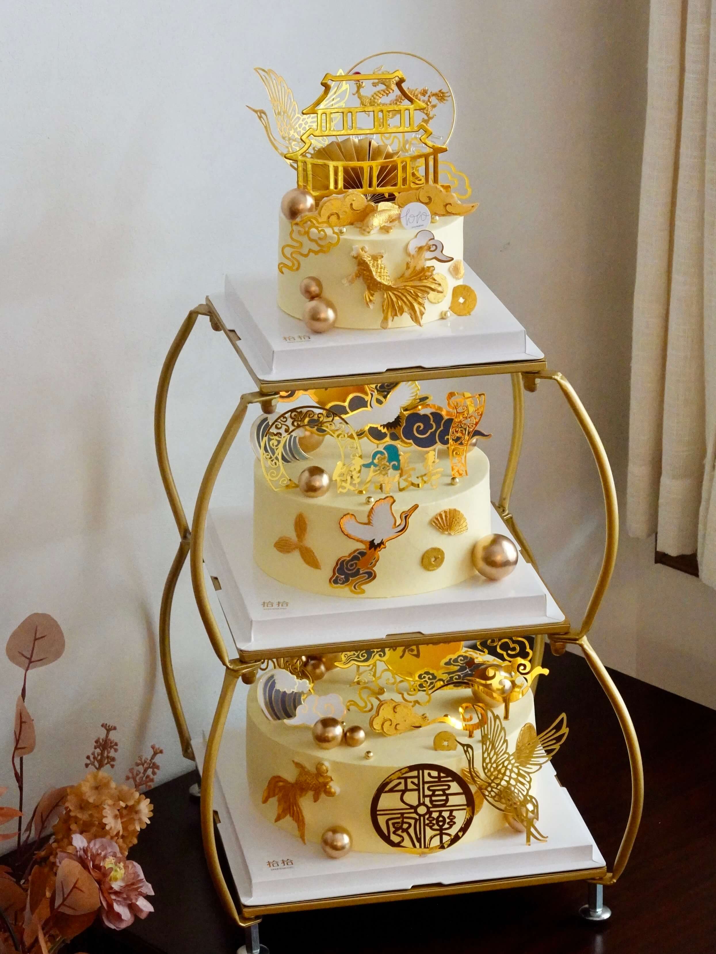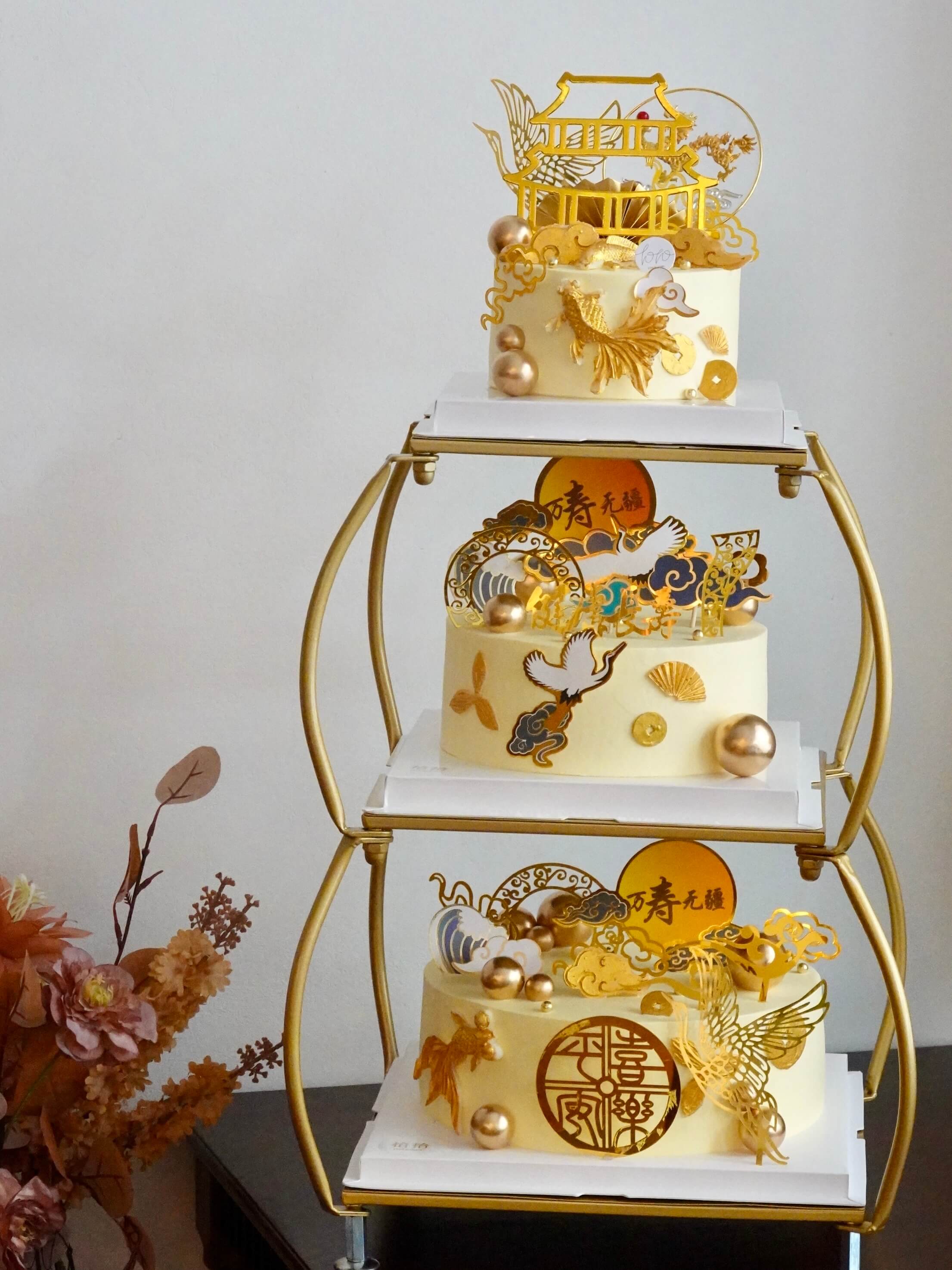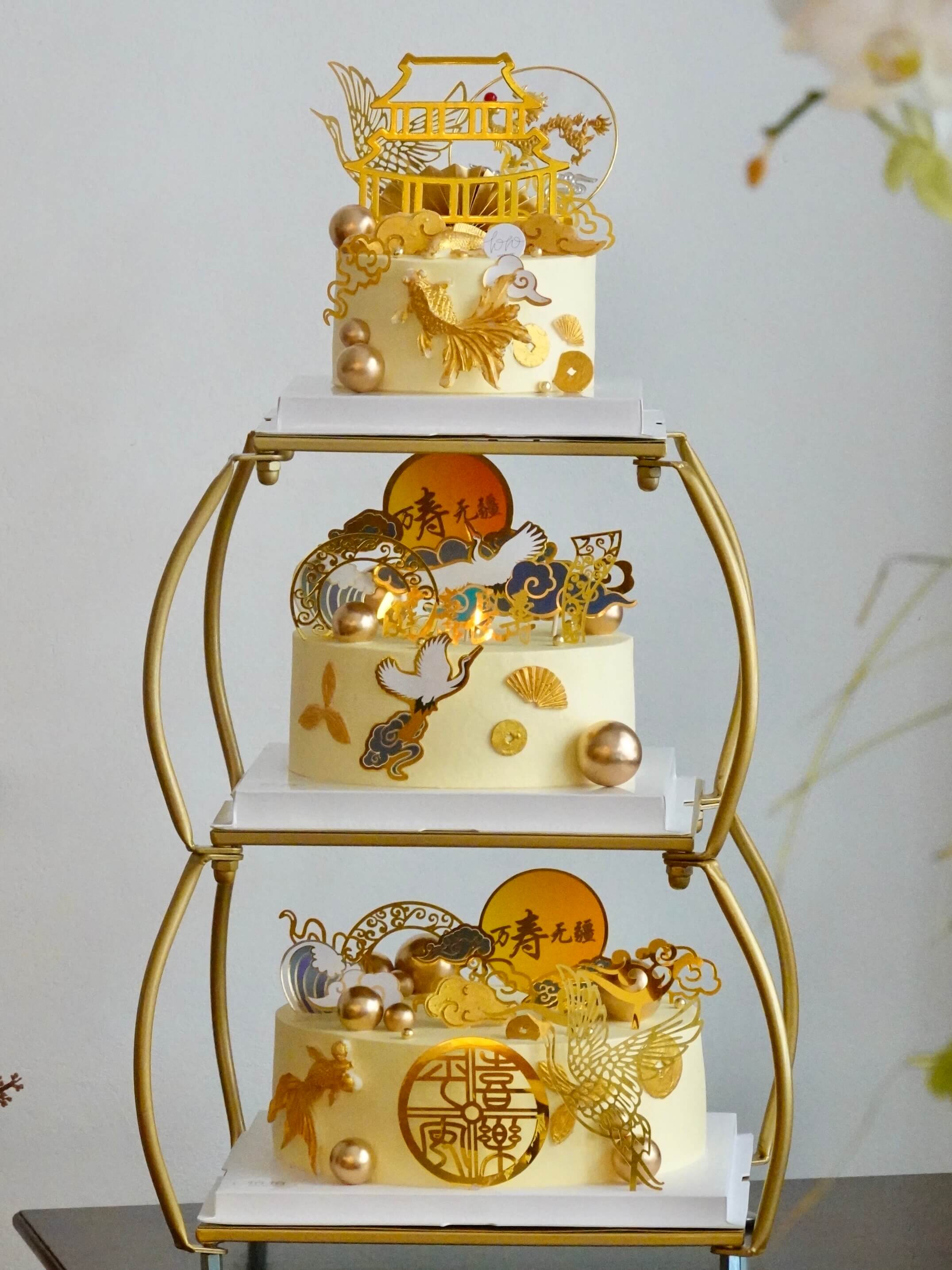 「鹤寿延年·福满层糕」祝寿·100%动物奶油(附图6+8+10寸三层·提前48小时预订)