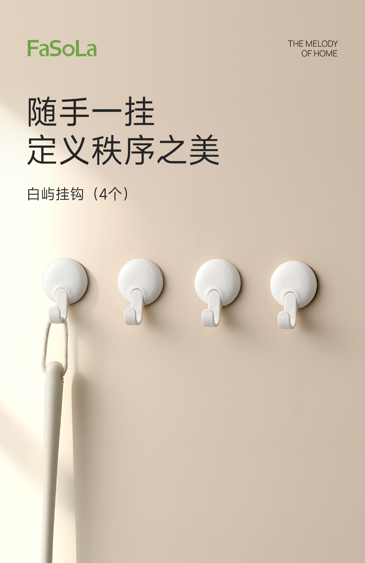 FaSoLa收纳挂钩免打孔厨房门后无痕粘钩浴室卫生间墙壁宿舍挂勾