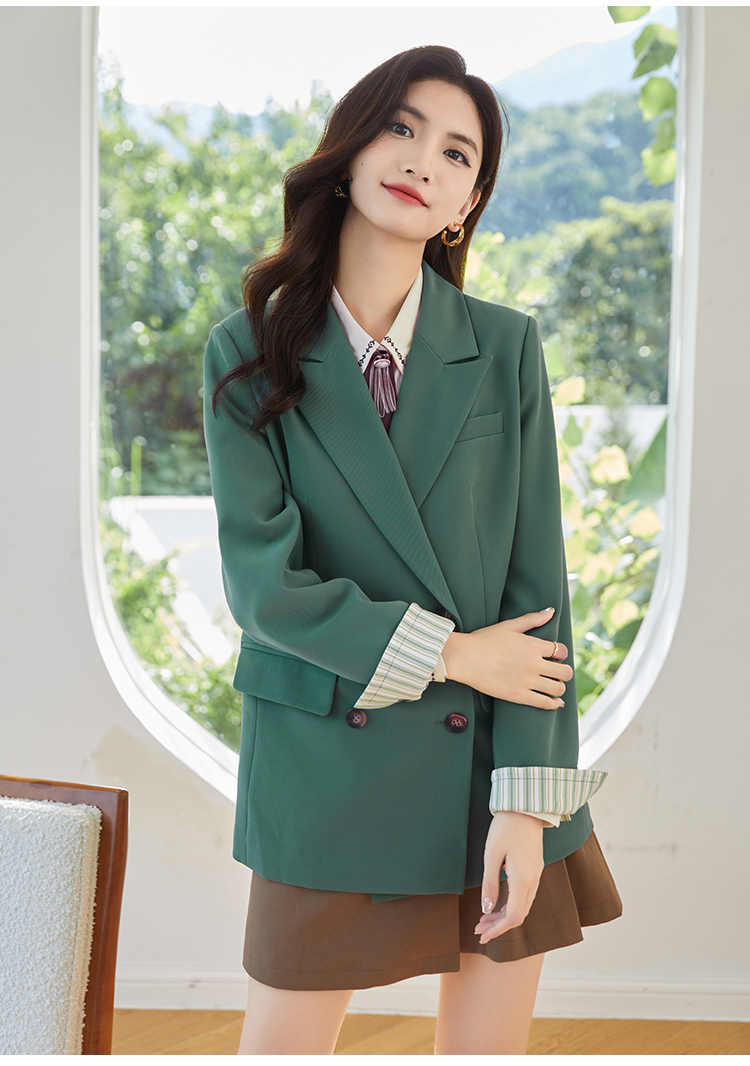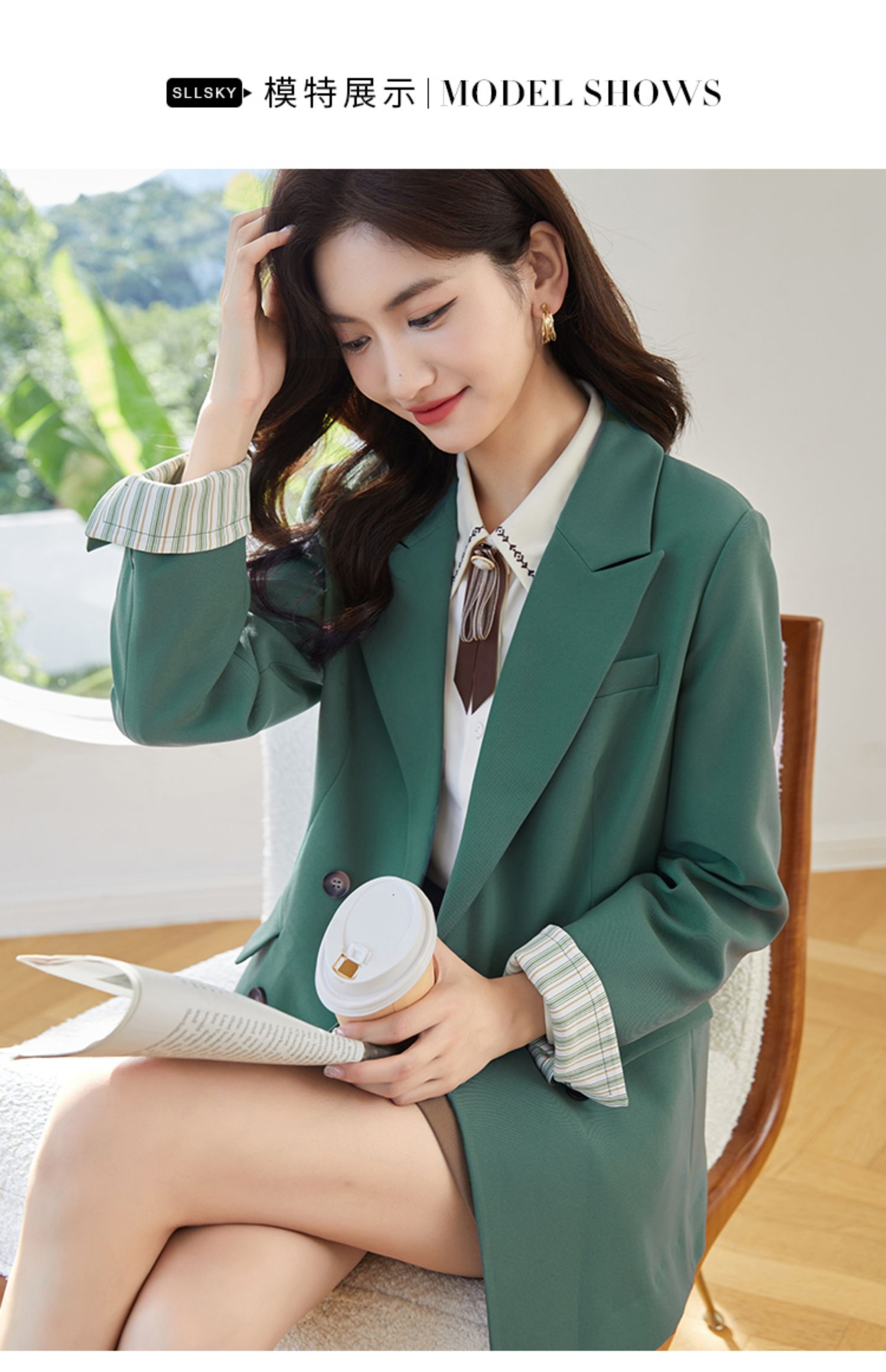 【熙世界】高端绿色西装外套女设计感职场会议炸街小西服春秋新款