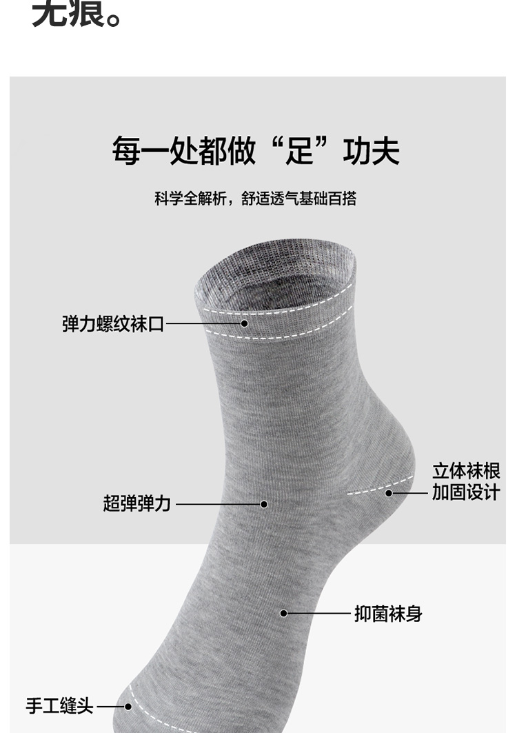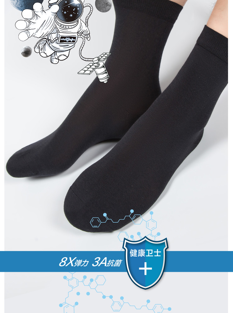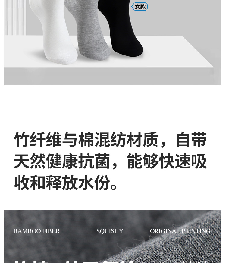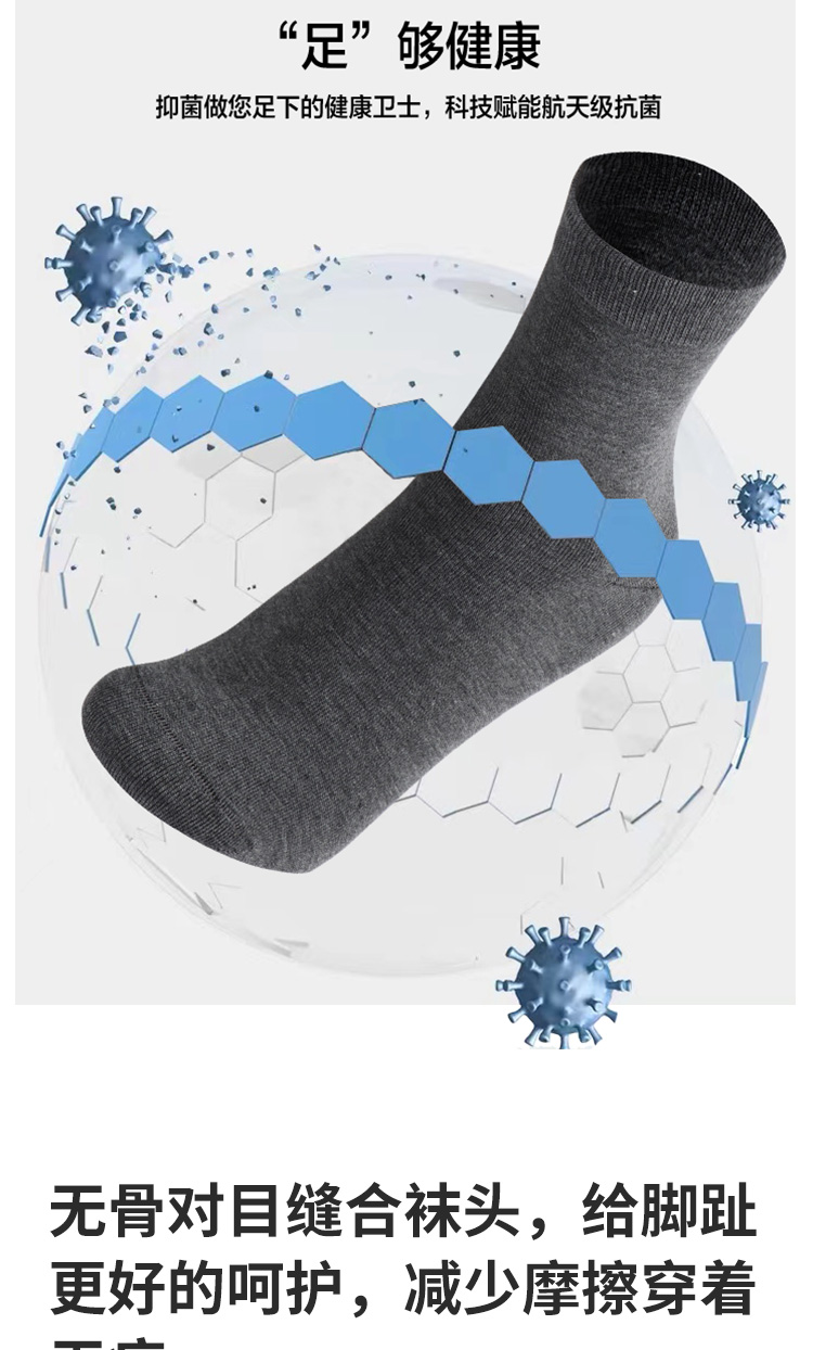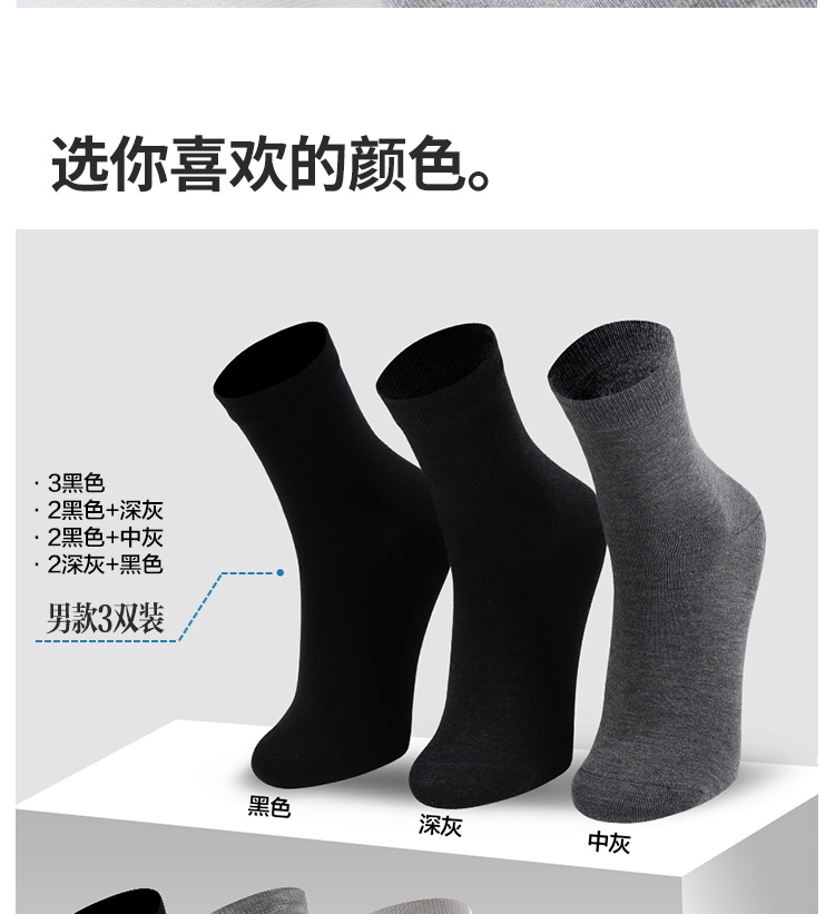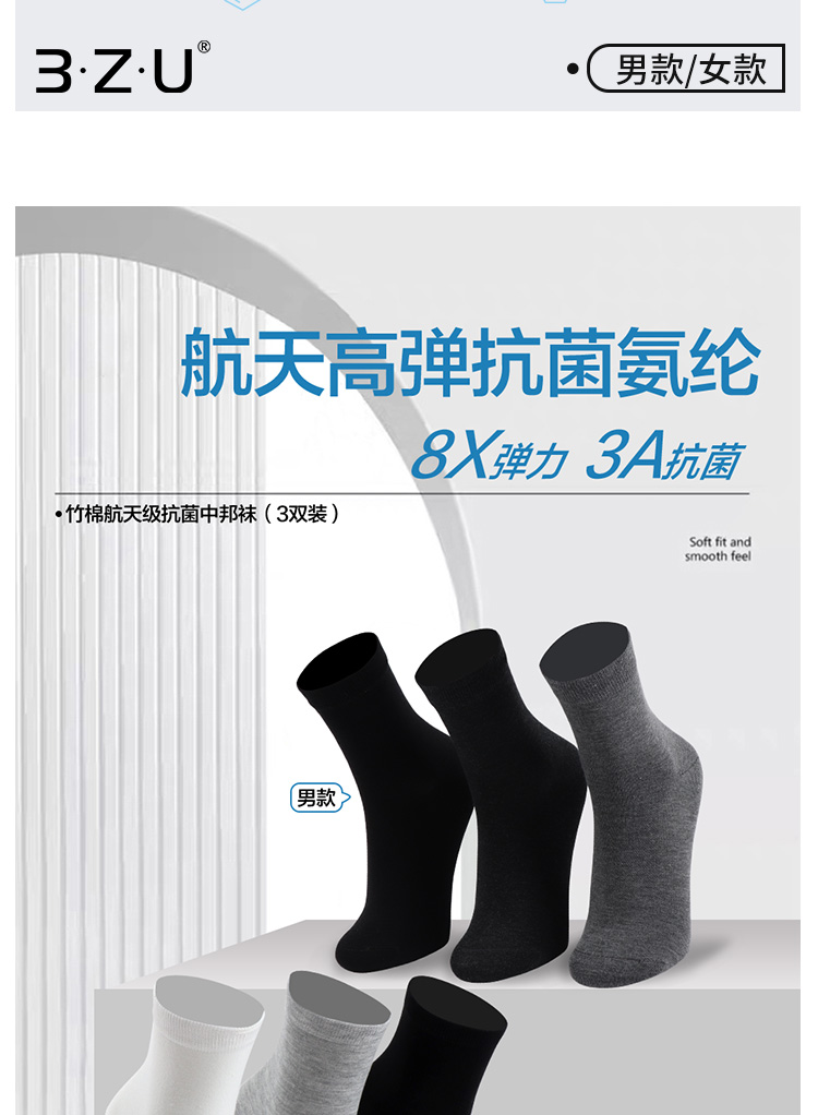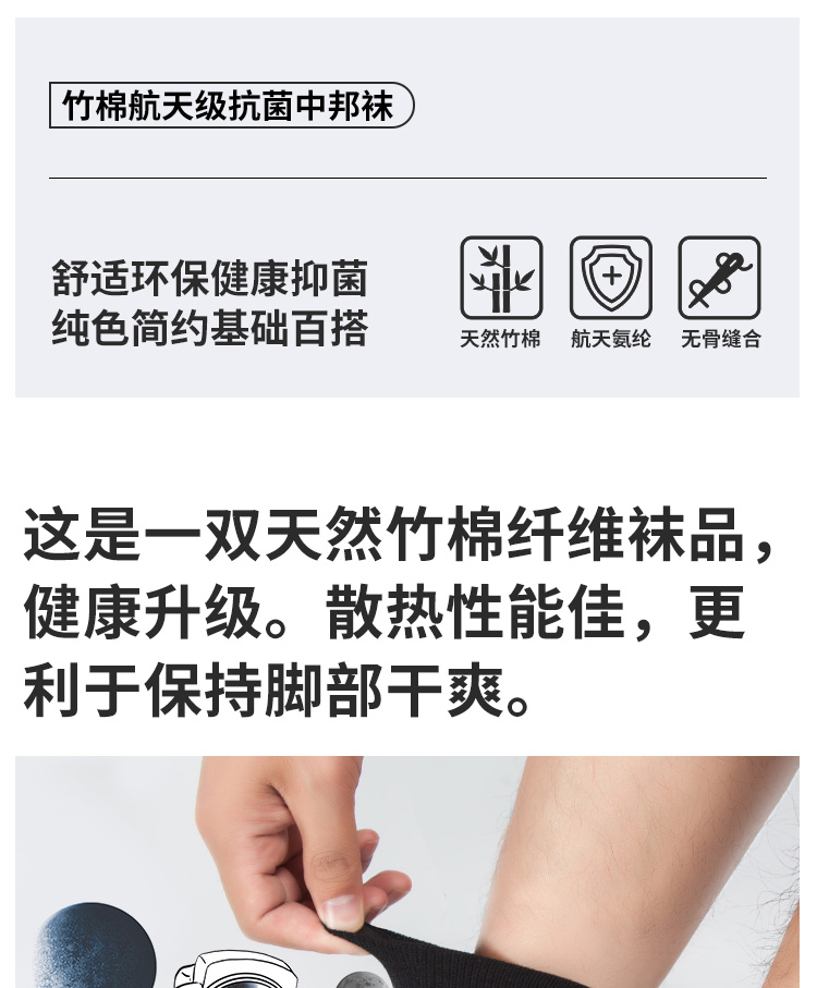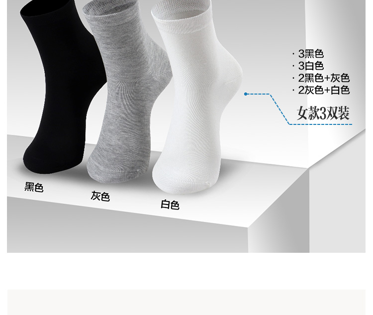 3双装竹棉航天级抗菌春秋男女中筒袜高弹无骨吸汗纯色男袜女袜