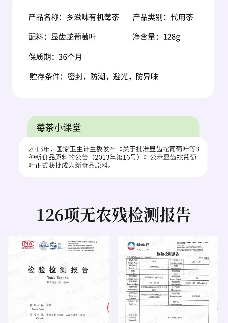 【乡滋味 正宗张家界有机莓茶袋装128g】国家地理标志性产品 色泽上乘 茶汤透亮 香味醇厚