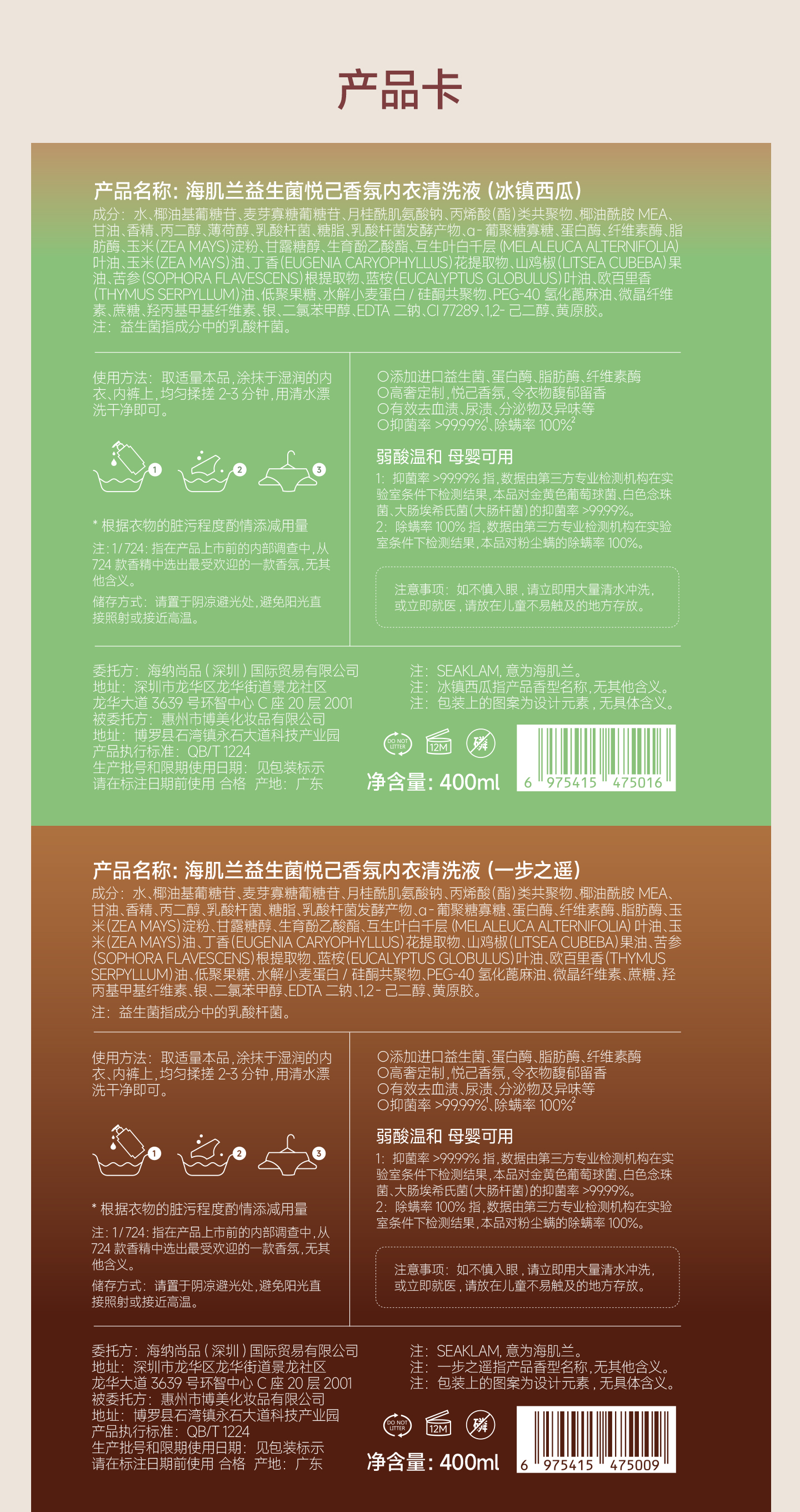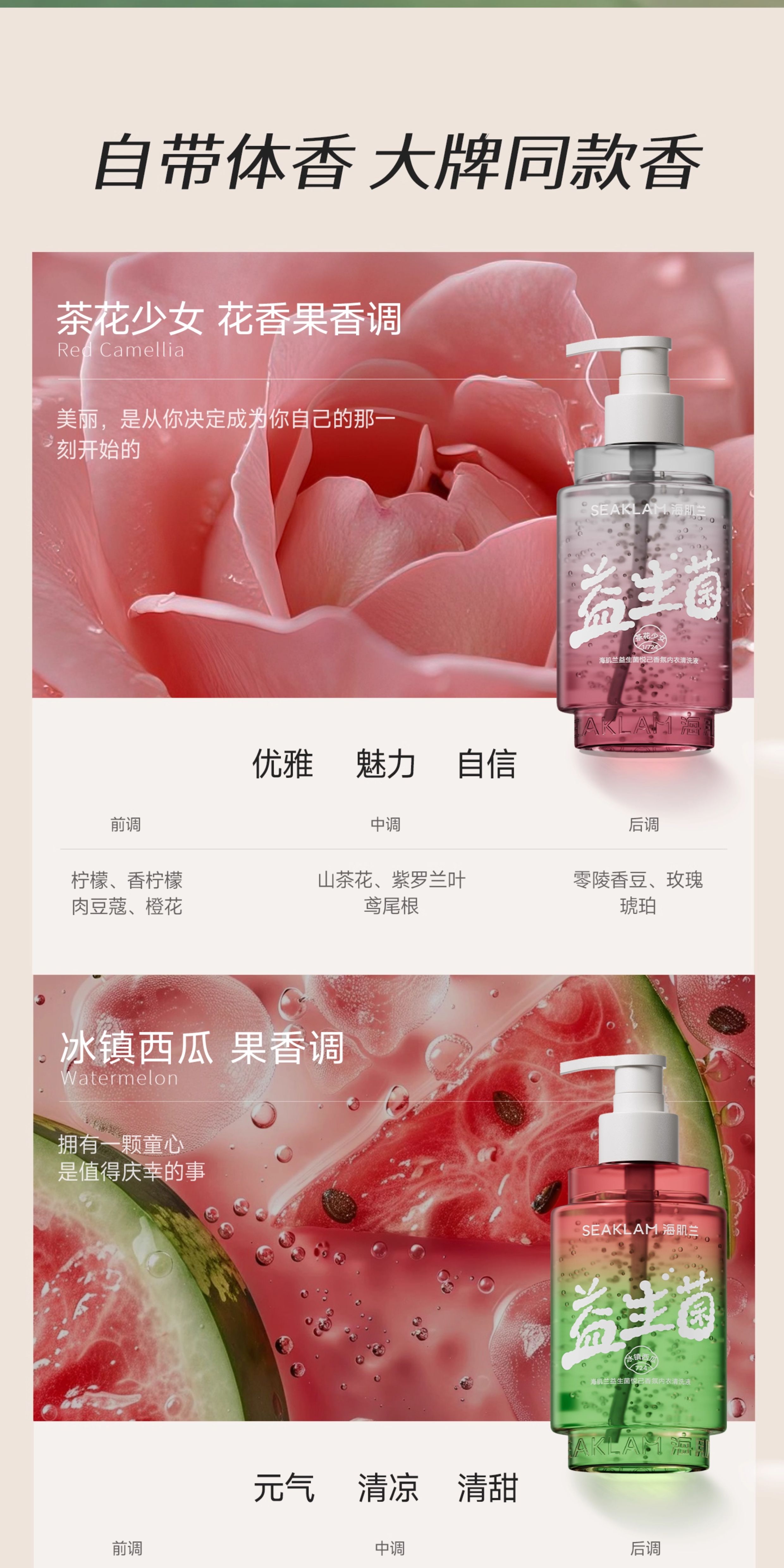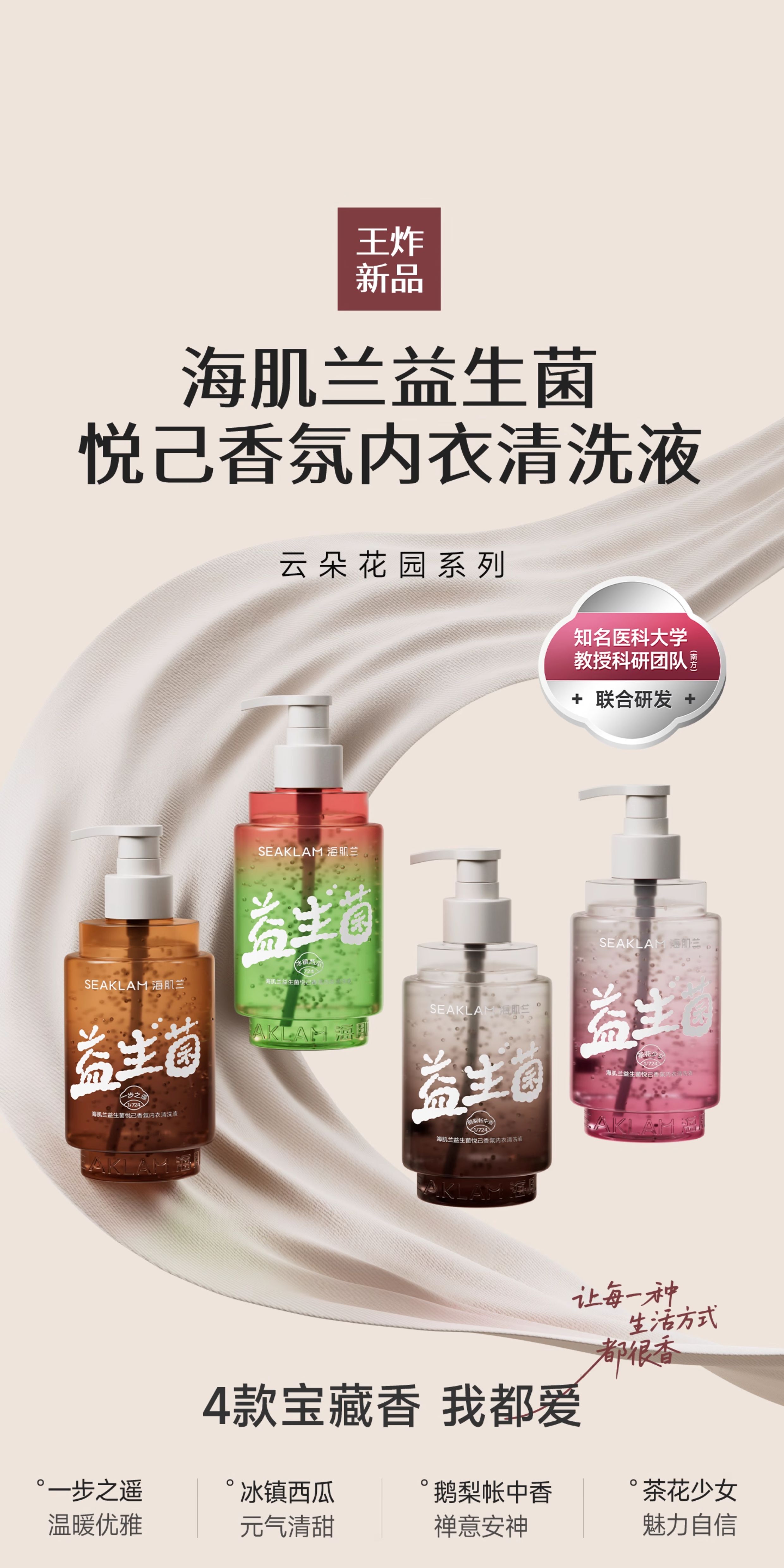 【分仓直发包邮】海肌兰益生菌微珠内衣清洗液400ml(茶花少女/一步之遥/鹅梨账中/冰镇西瓜)l
