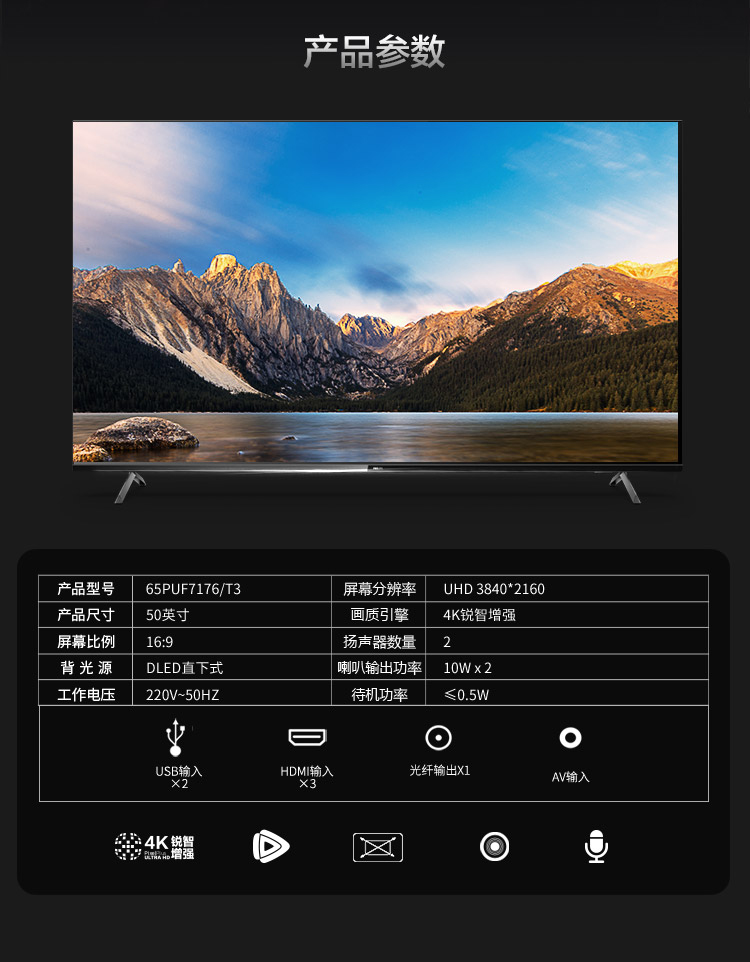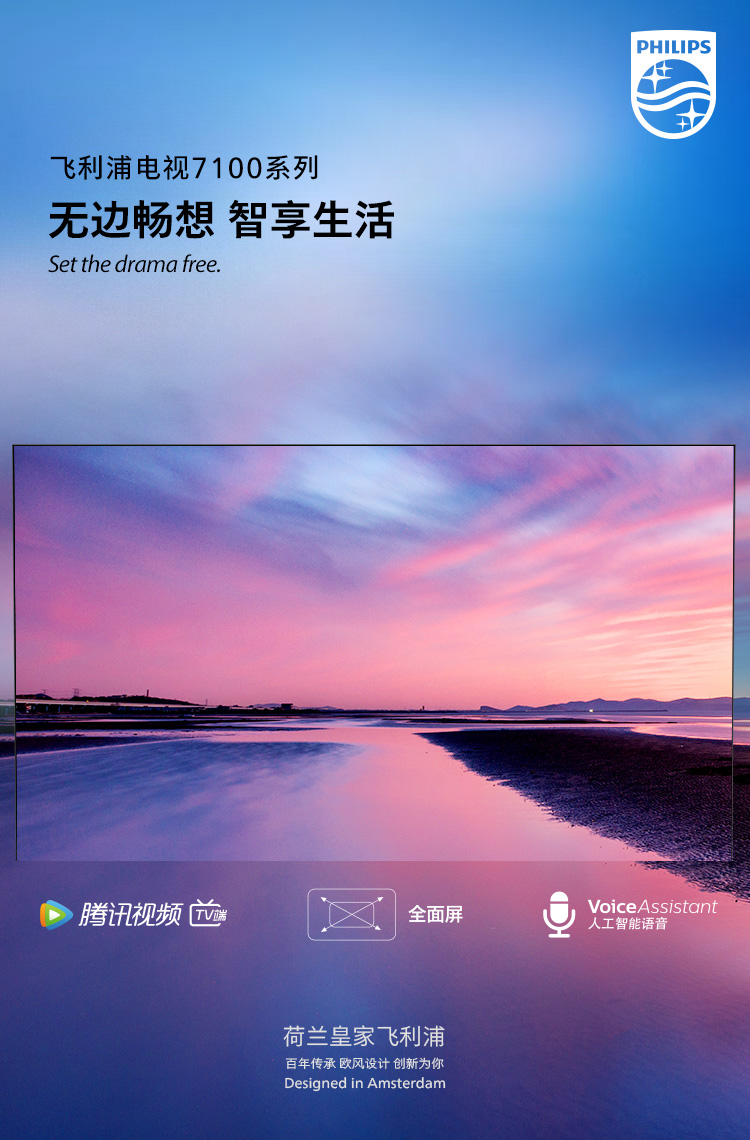 飞利浦(PHILIPS)4K超高清网络智能全面屏电视 杜比全景声 客厅影音智能语音 55PUF7176/T3