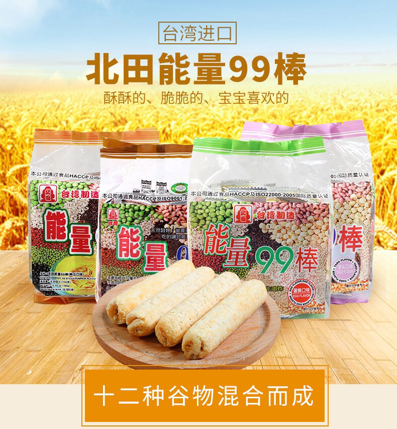 台湾北田能量99棒-粗粮糙米卷米果蛋黄味儿童零食-会员6折