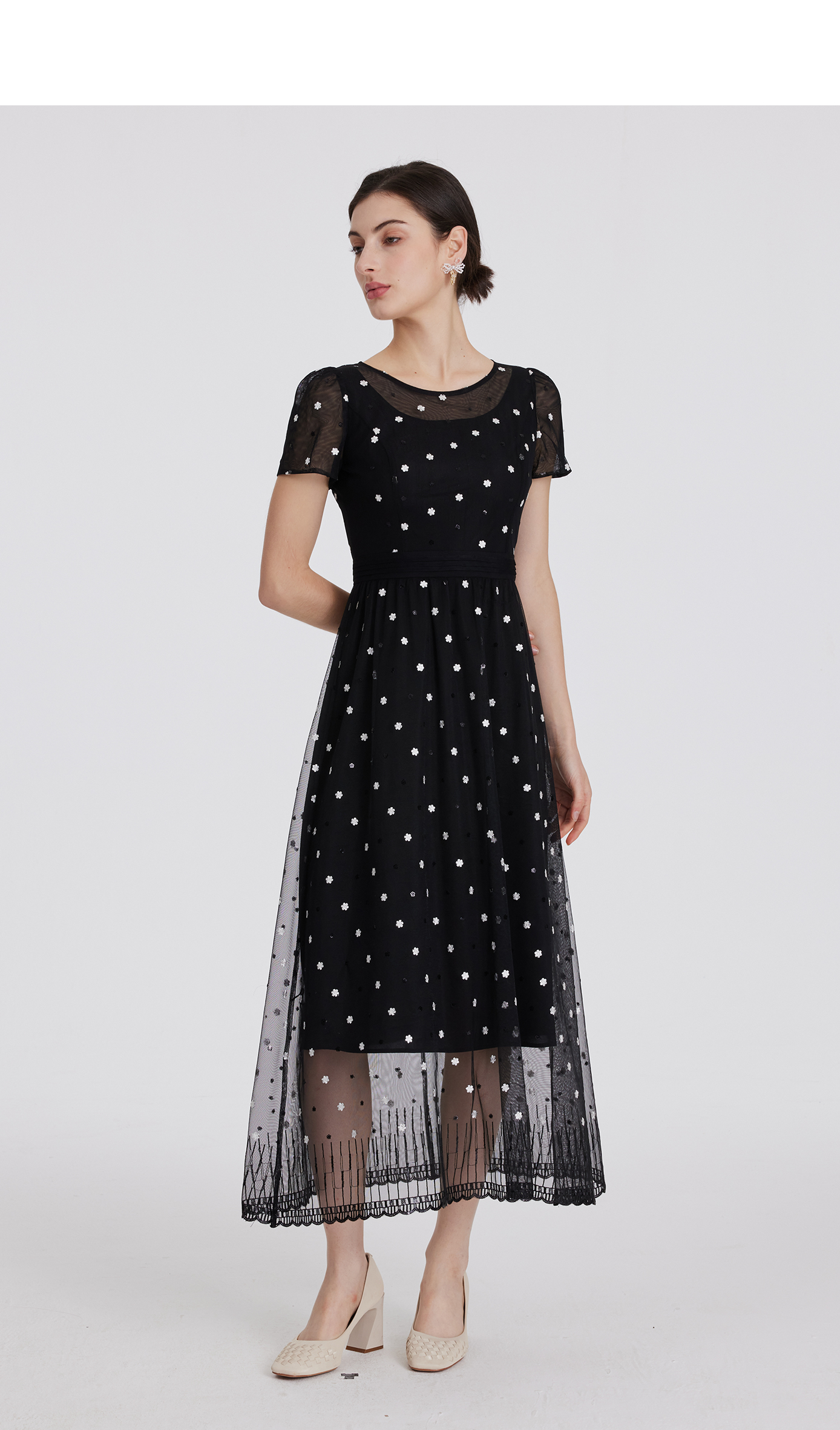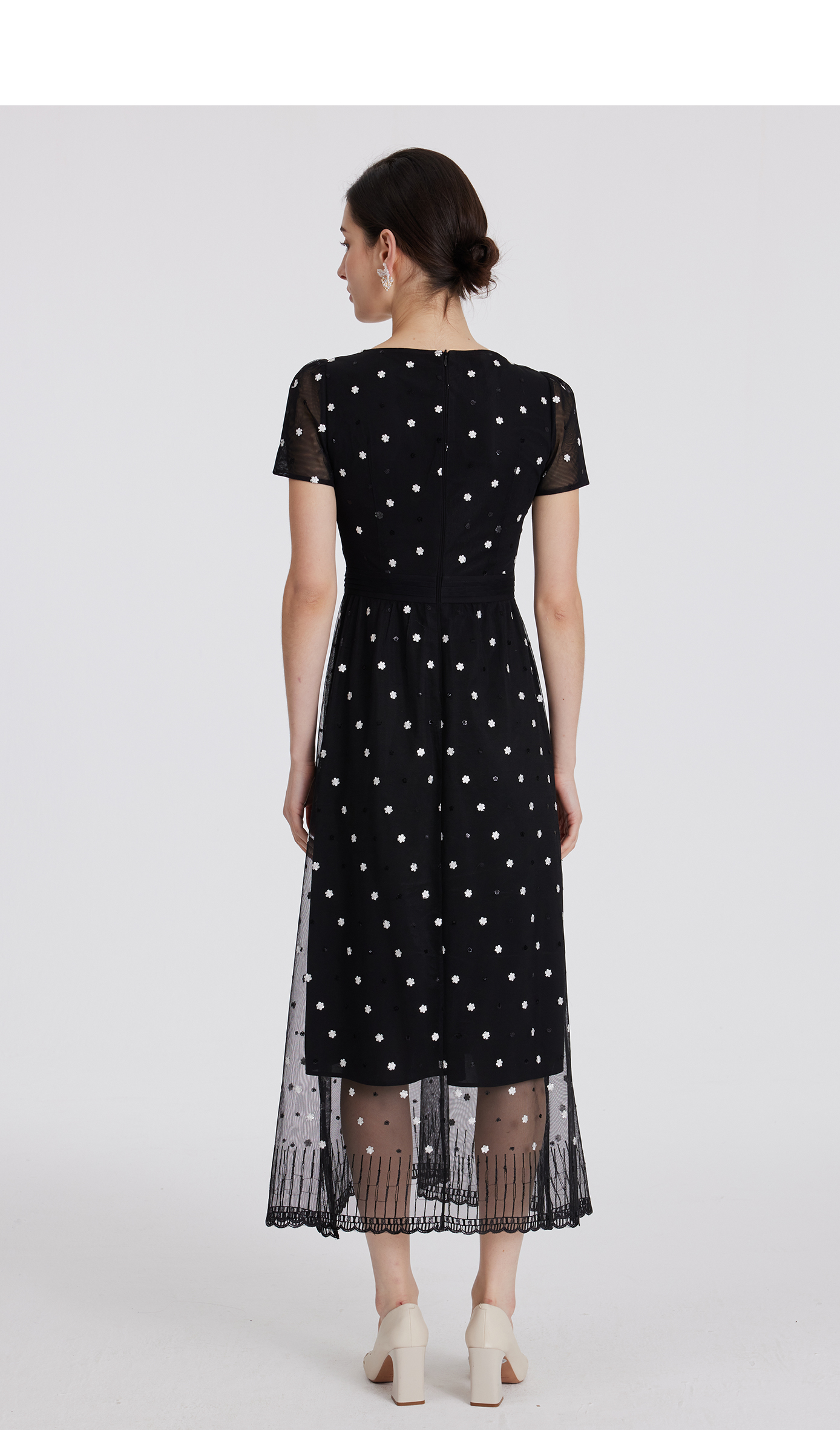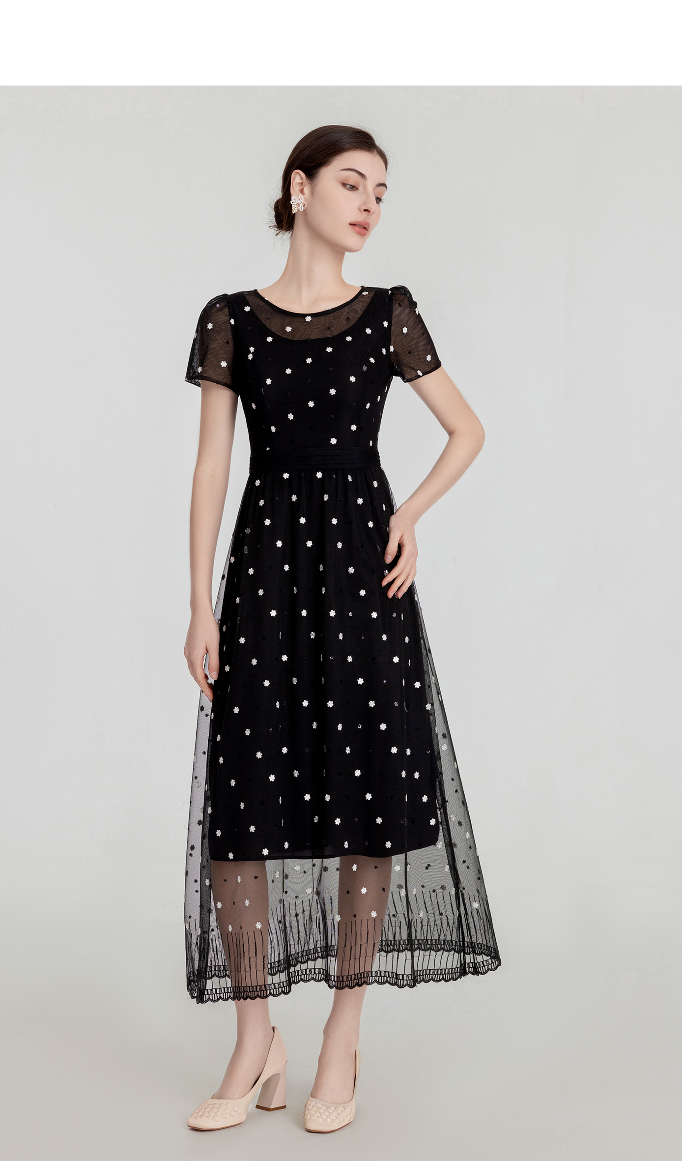 司歌刺绣短袖收腰连衣裙复古显瘦A891046X