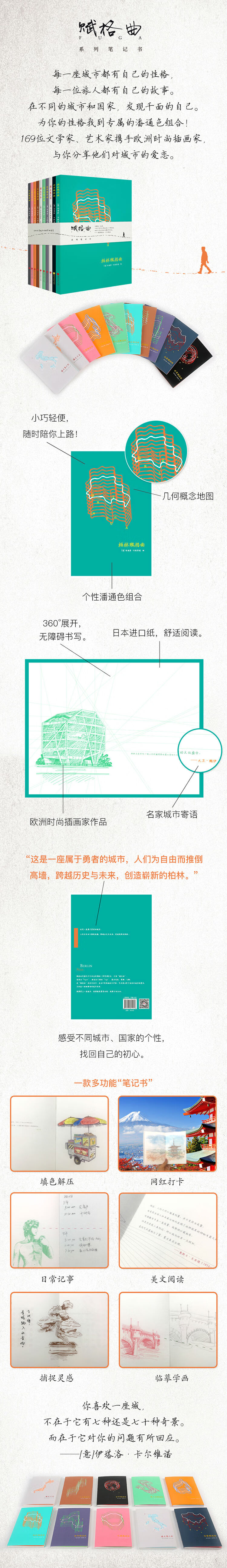 城市赋格曲系列笔记本收录了世界各地不同城市和国家的美景,邀请意大利时尚插画家玛丽萨•韦斯蒂塔,用潇洒快意的城市速写展现都市风光。这其中既有“网红打卡”必去的地标性景观,也有*地道的无名街景。不同的城市及国家不仅有各自的“性格定位”还有属于自己的潘通色号作为主题色彩。比如,像柏林这样一座“属于勇者的城市”就使用了鲜明的橙色与绿色的对比色组合,尽显勇敢创新的城市性格。