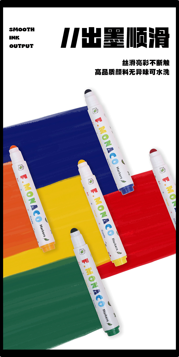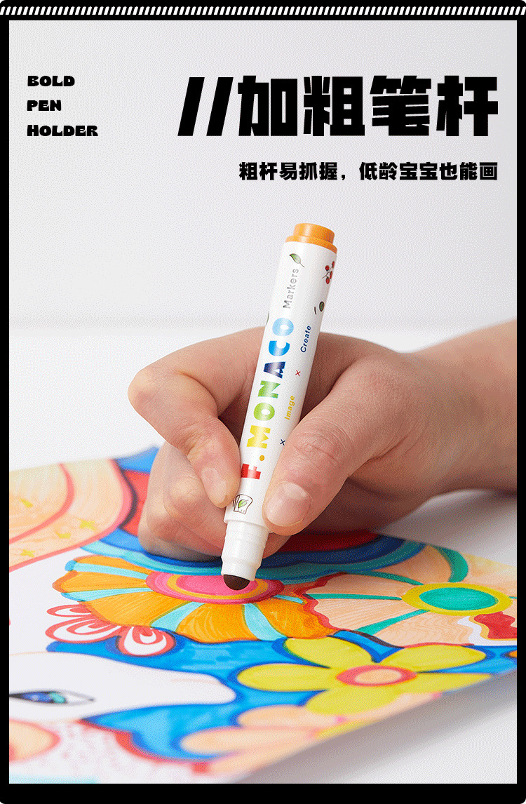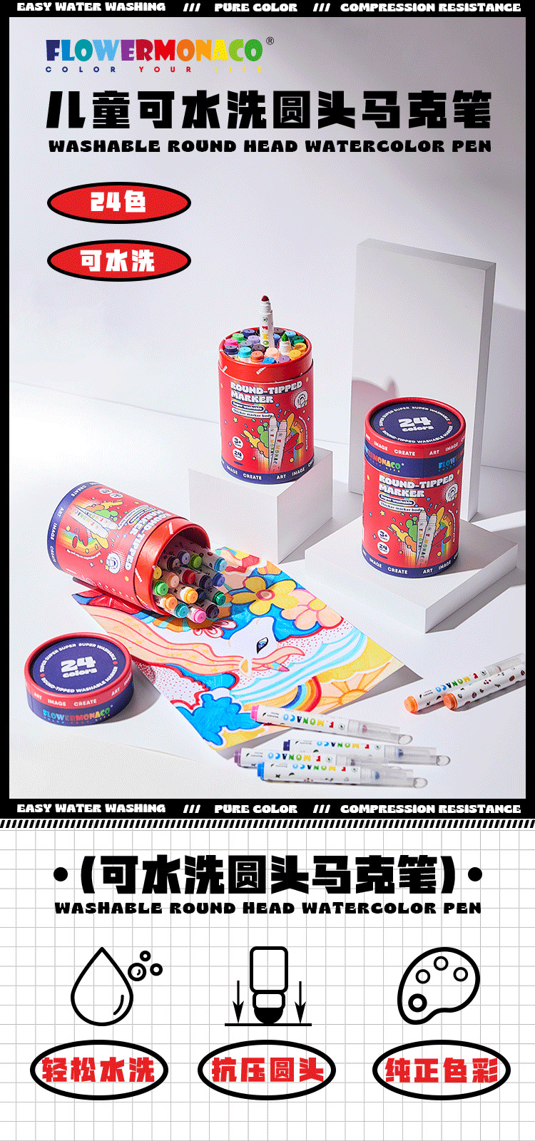 FlowerMonaco花芽 儿童水彩笔套装幼儿园无毒可水洗画笔宝宝画画涂鸦笔绘画幼儿画笔套装婴儿24色圆头水溶性马克笔 3岁+