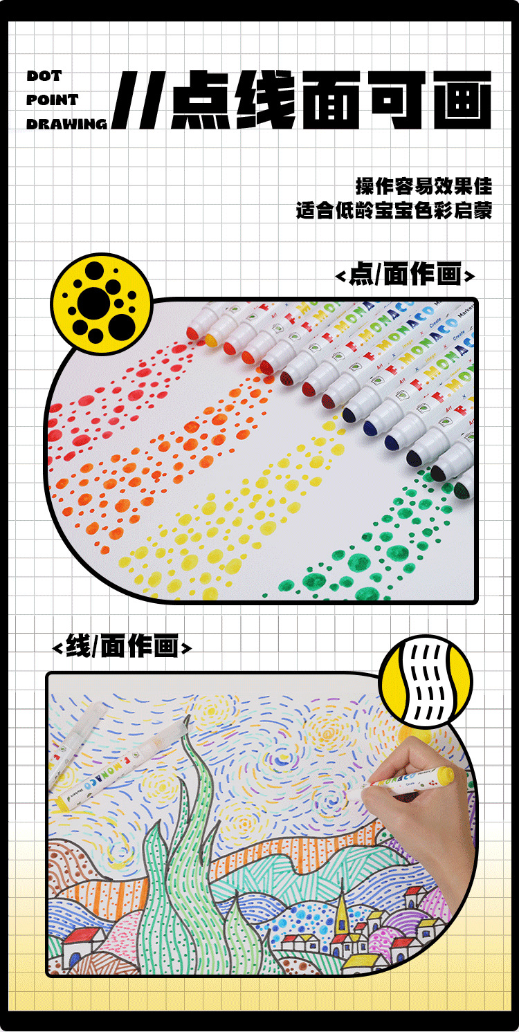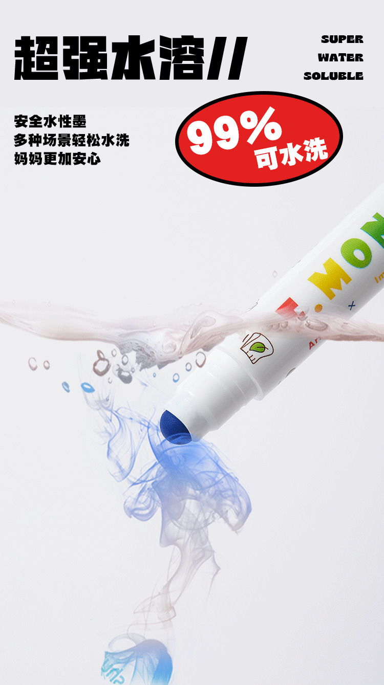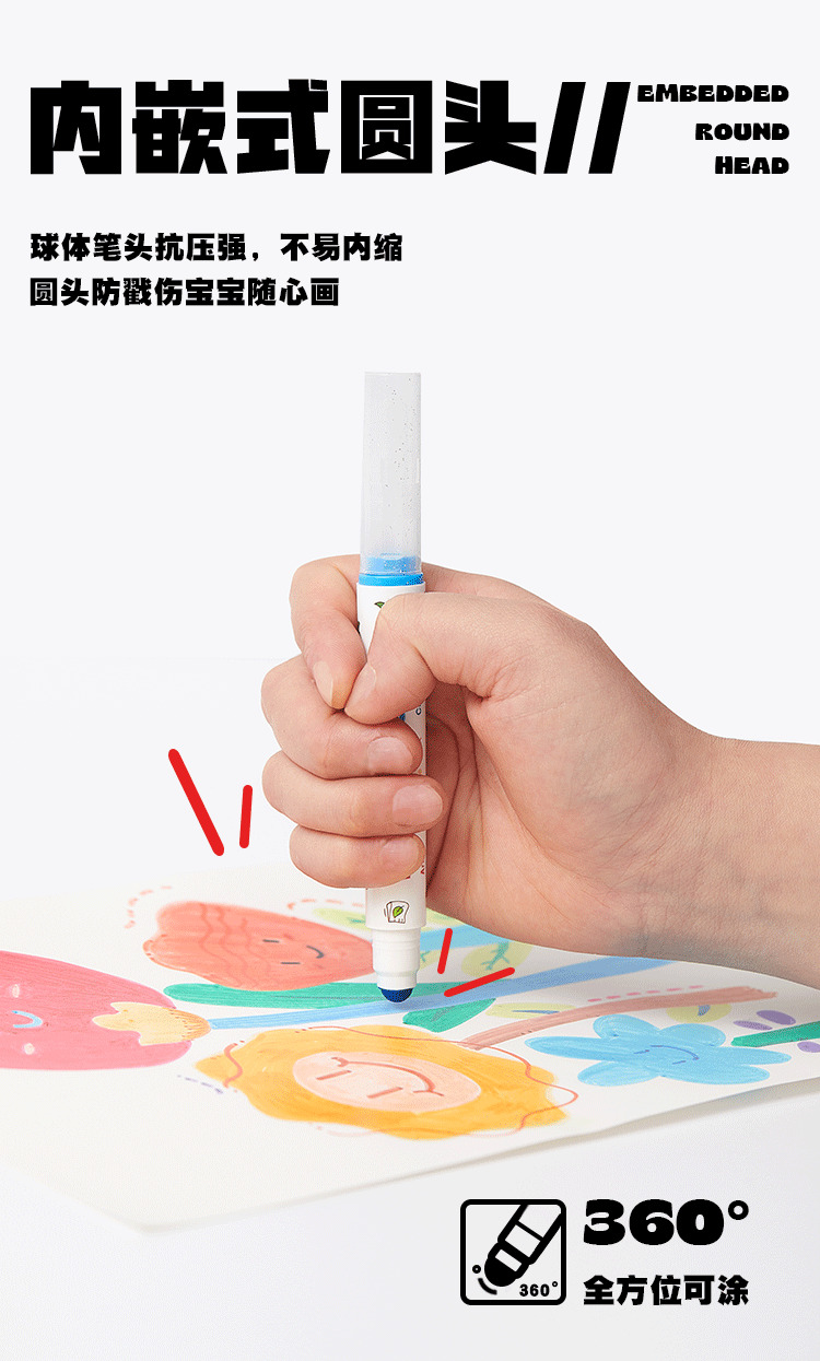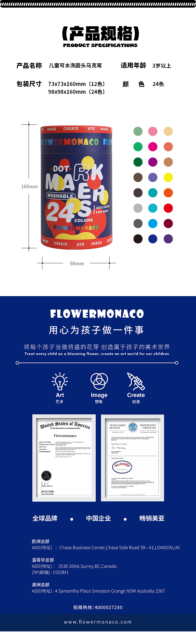 FlowerMonaco花芽 儿童水彩笔套装幼儿园无毒可水洗画笔宝宝画画涂鸦笔绘画幼儿画笔套装婴儿24色圆头水溶性马克笔 3岁+