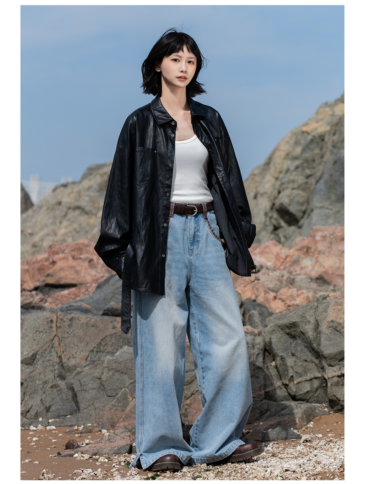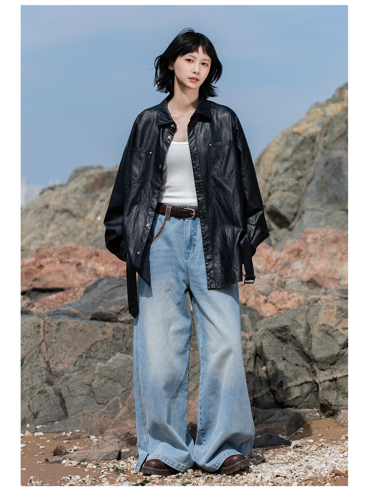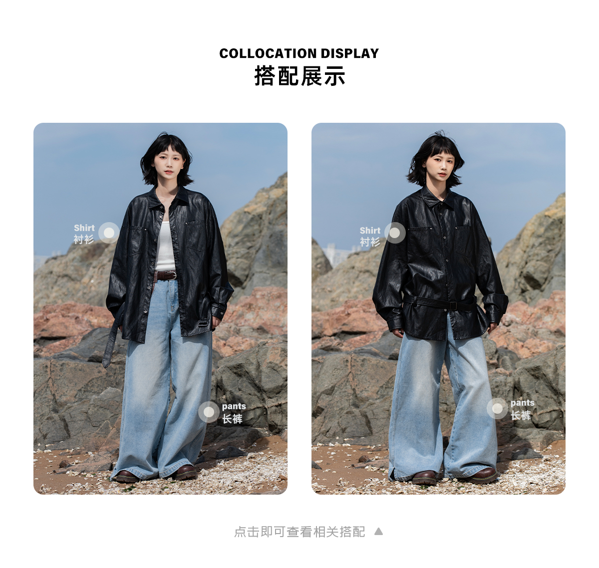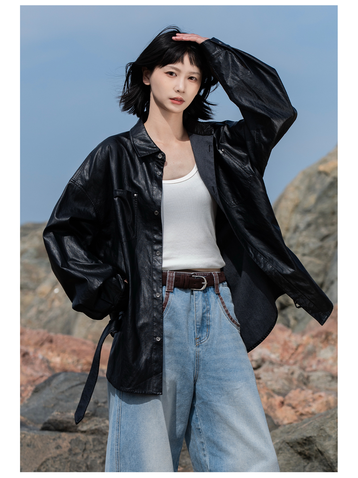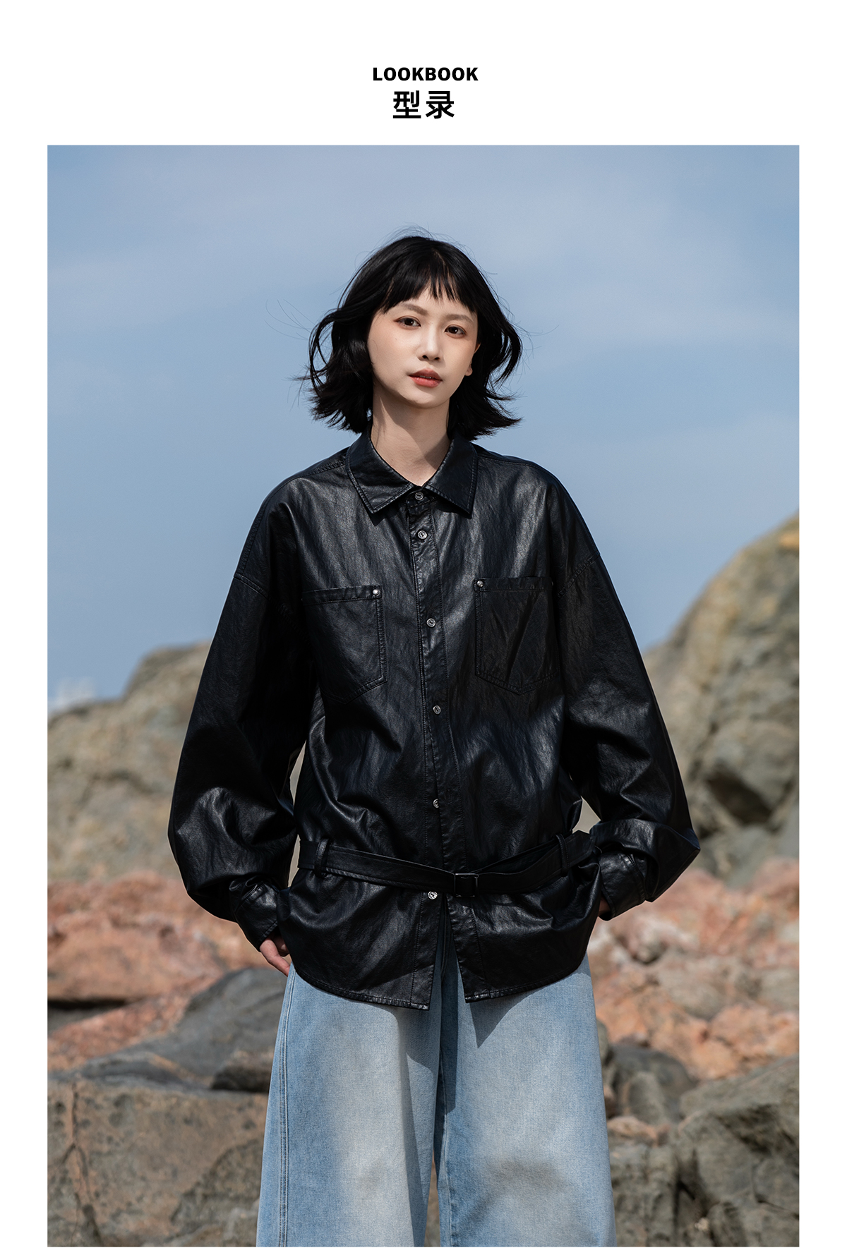 早乙女惠子saotome/STMCS13147/铆钉绑带收腰皮衬衫