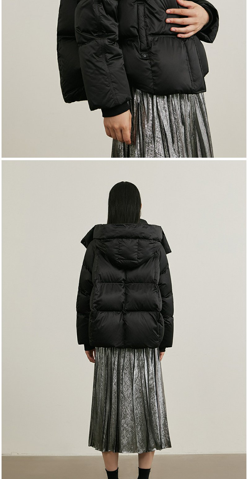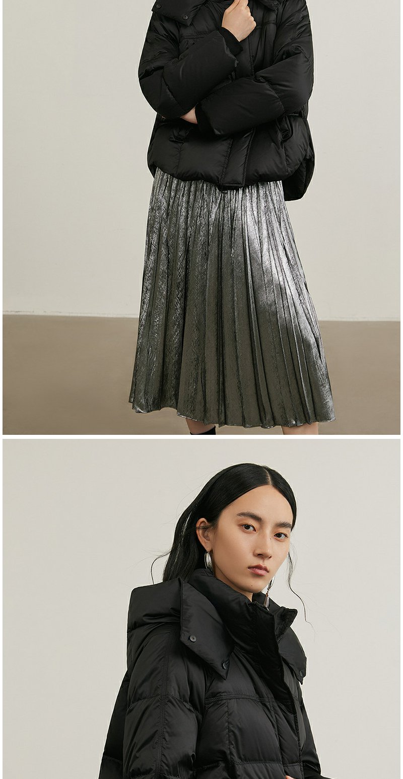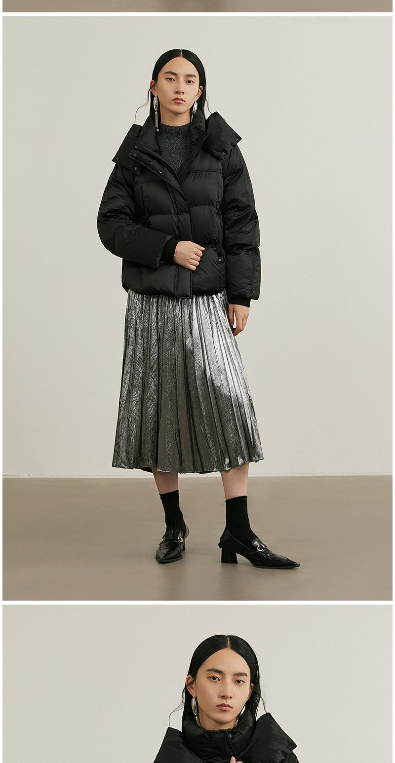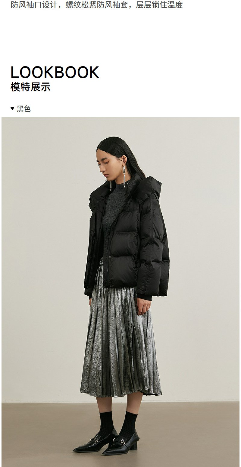 NEELLY纳俪商场同款冬新款黑色高领短款连帽外套女90白鸭绒羽绒服N24105L01116