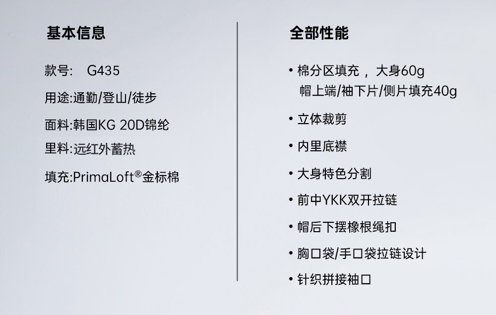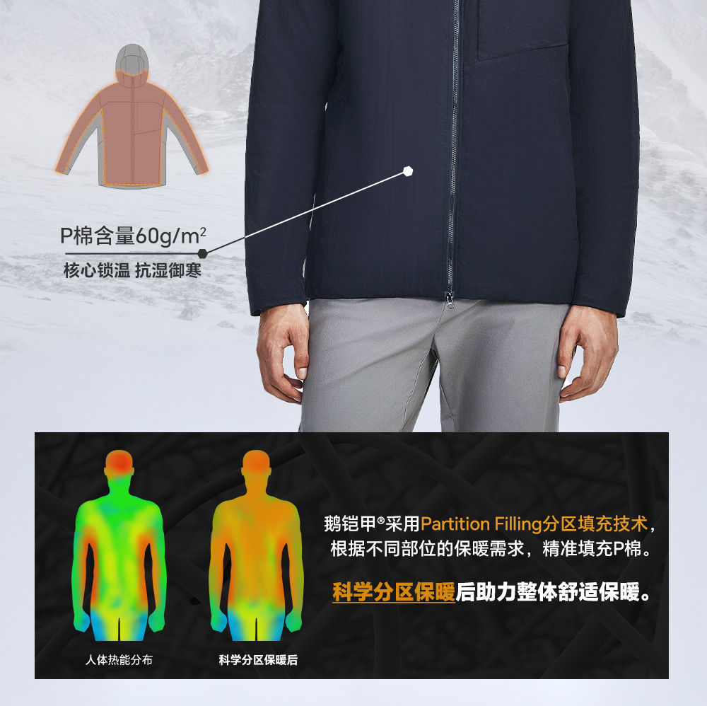 天石鹅铠甲Primaloft金标P棉棉服男士连帽保暖秋冬户外运动服夹克G435(40g/60g)