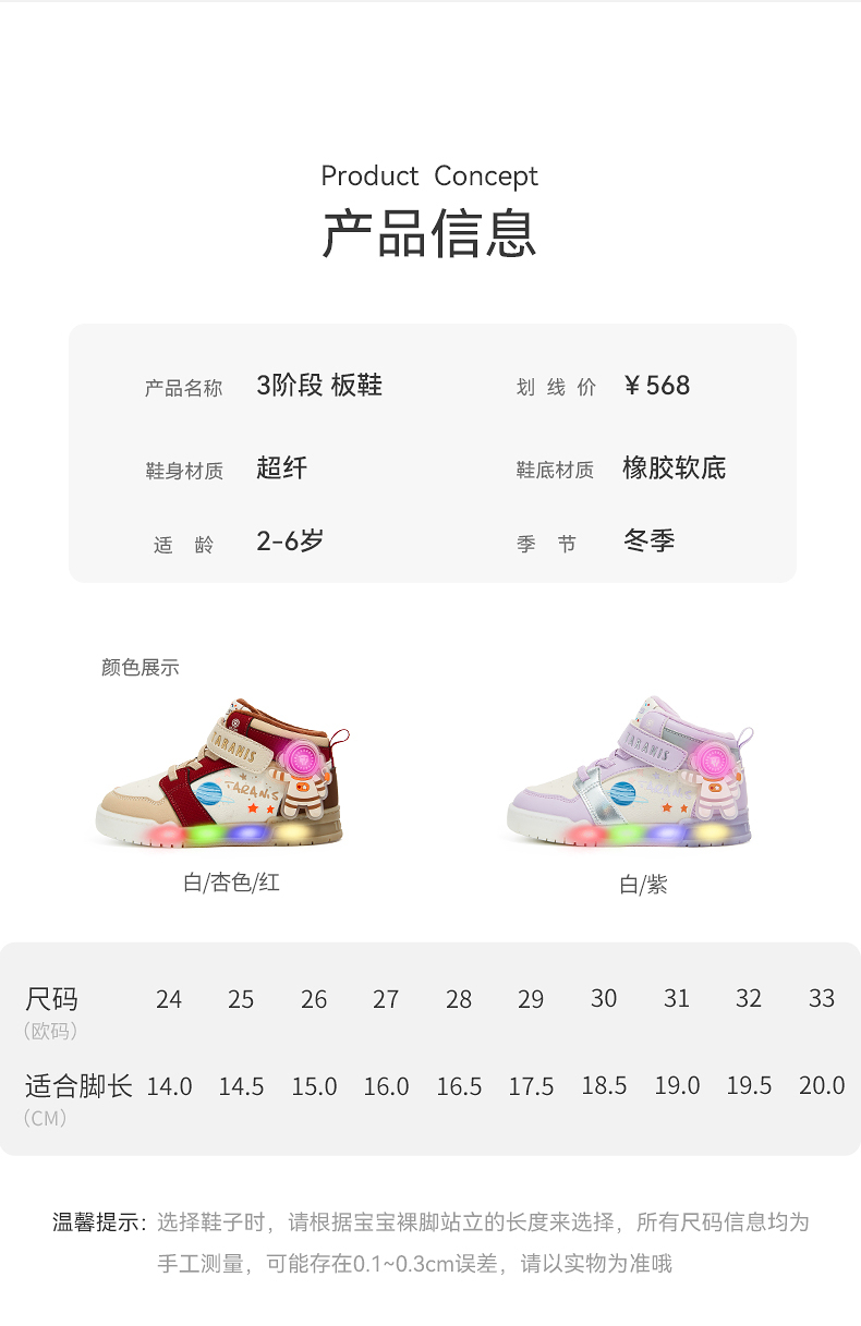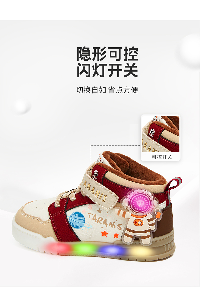 泰兰尼斯儿童闪灯板2025年冬季新款男童板鞋女童休闲闪灯鞋儿童闪灯鞋子 T02X5D6642