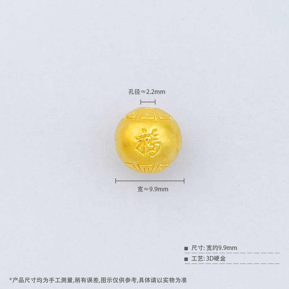 【限时7.5折】【定价黄金】足金 #祈福 3D硬金空心福气满满对称四福回纹转运金珠手串配件福珠Diy手串配件(AU3DSC00038-2)(特殊产品下单后不退款不退货不换货不补差价)