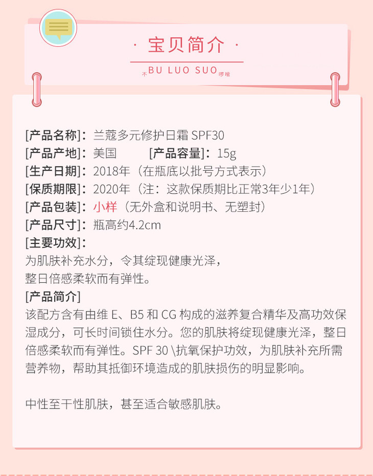【香港直邮】 美版! 兰蔻多元修护日霜spf30 保湿补水 小样15g