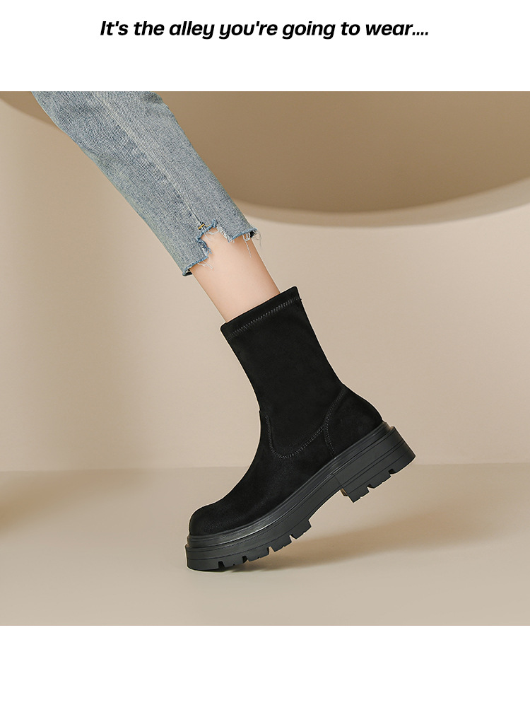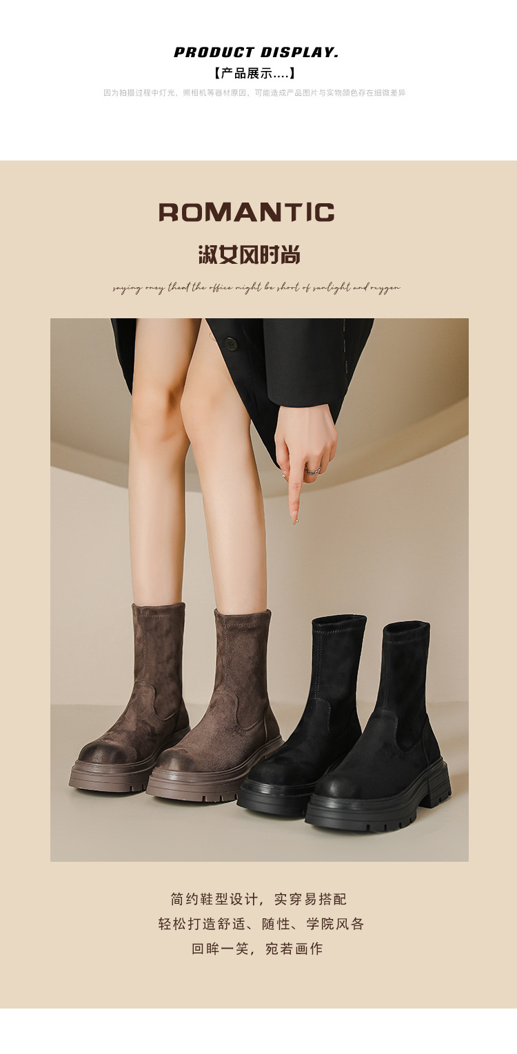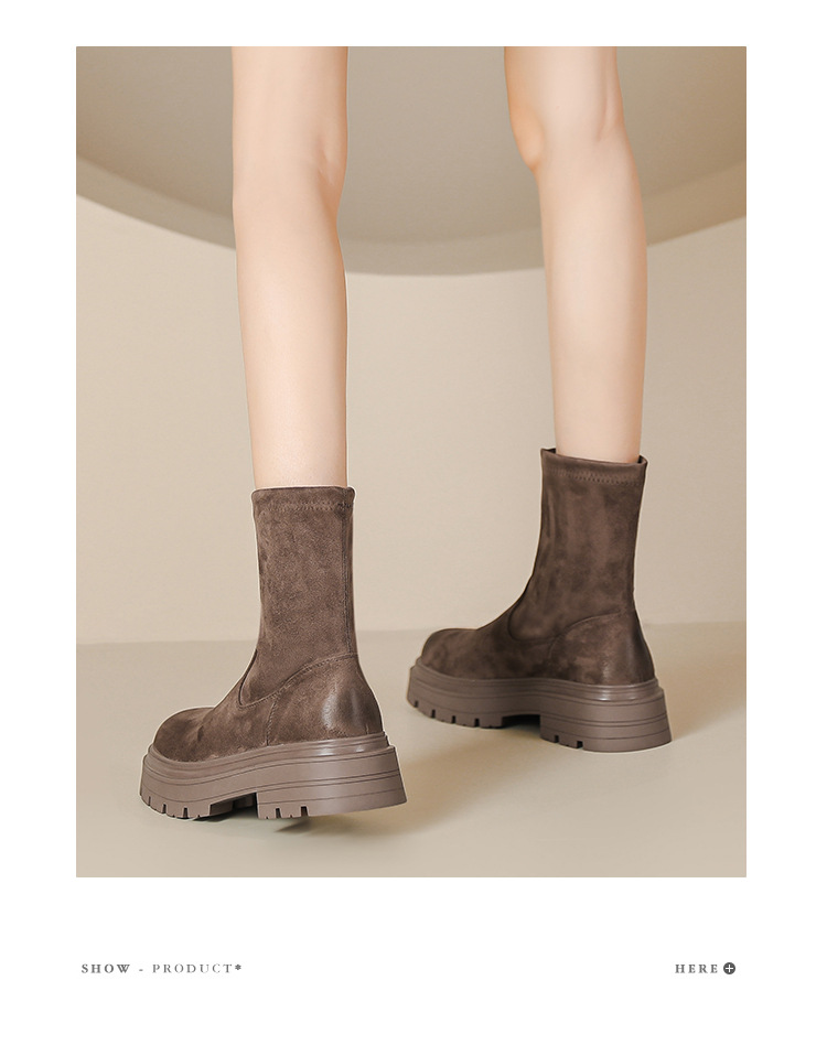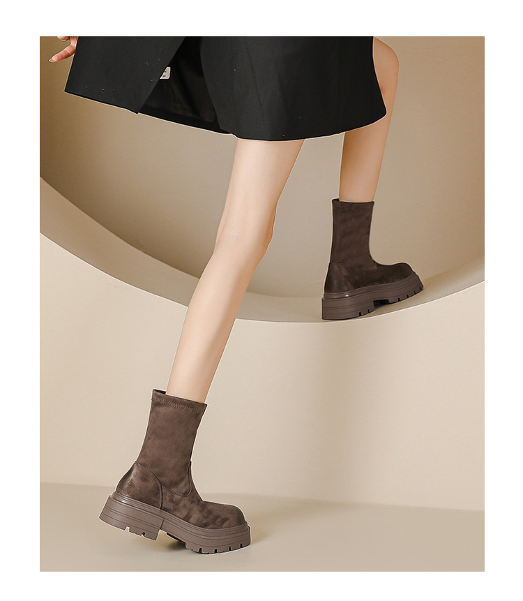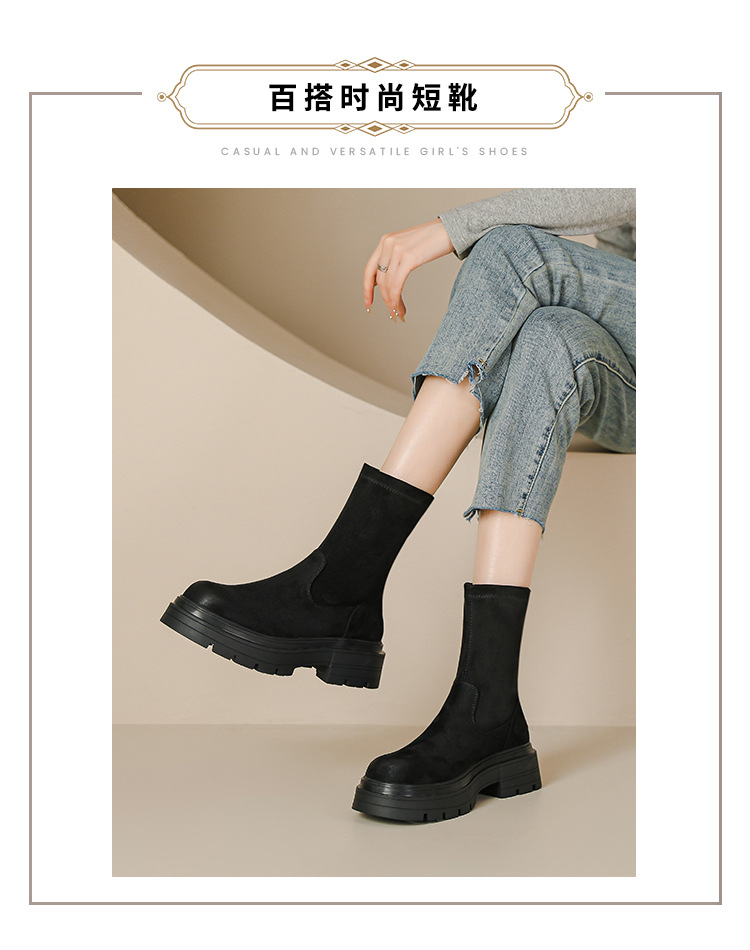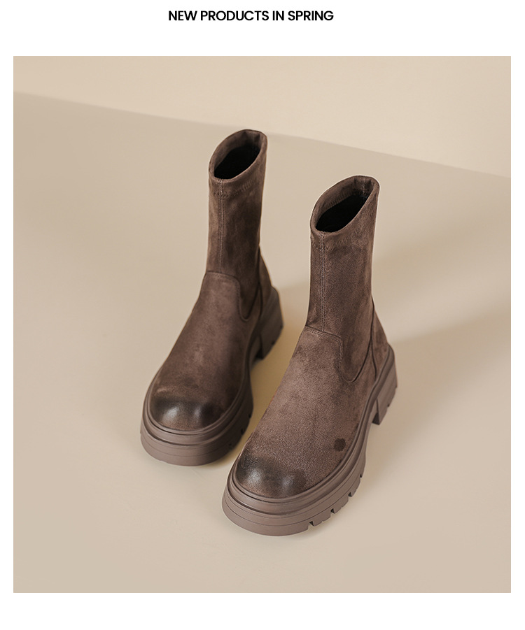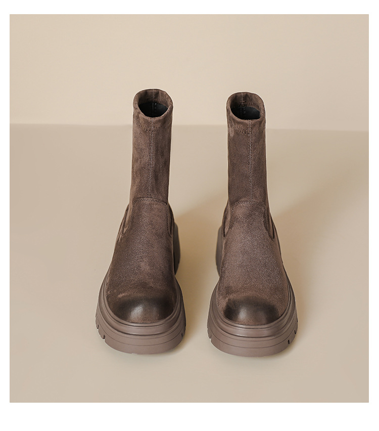 擦色短靴女秋冬新款英伦风复古弹力瘦瘦靴厚底短筒靴子绒面骑士靴