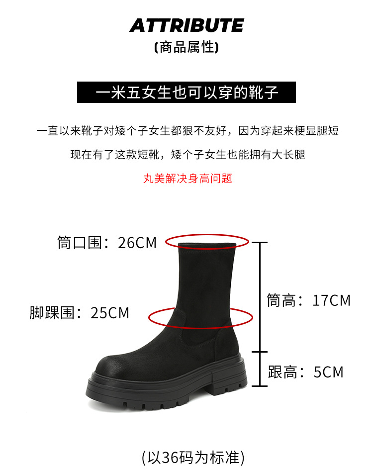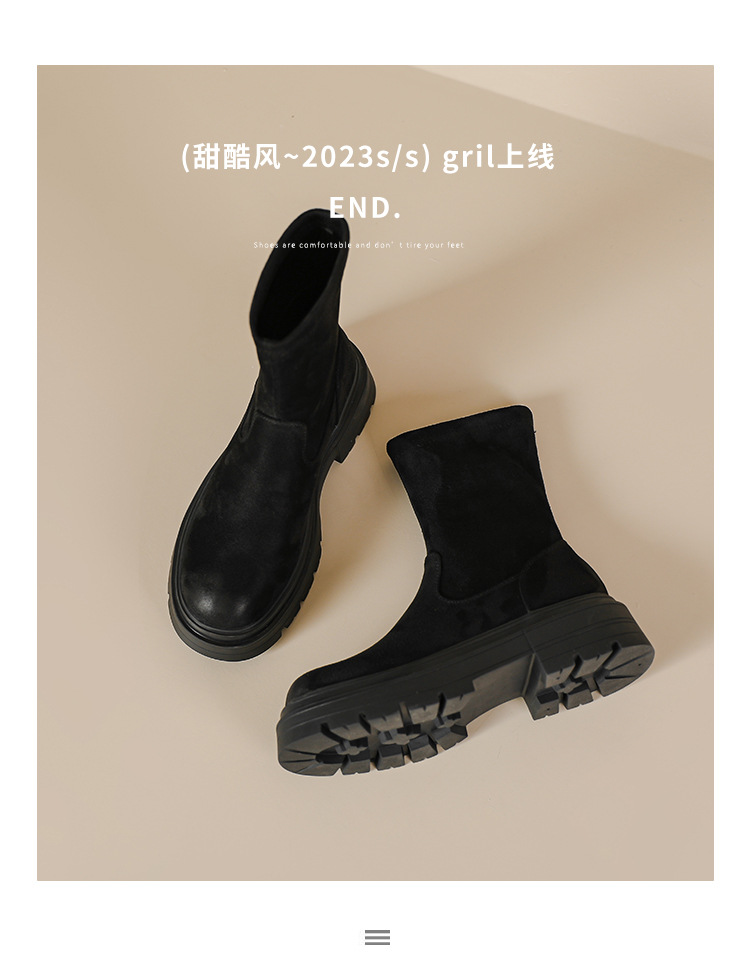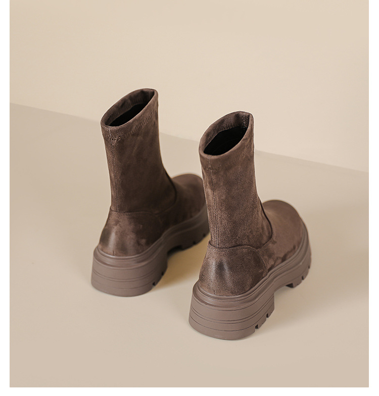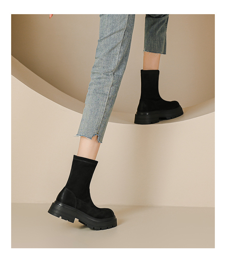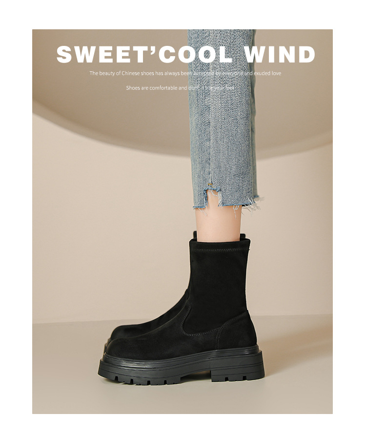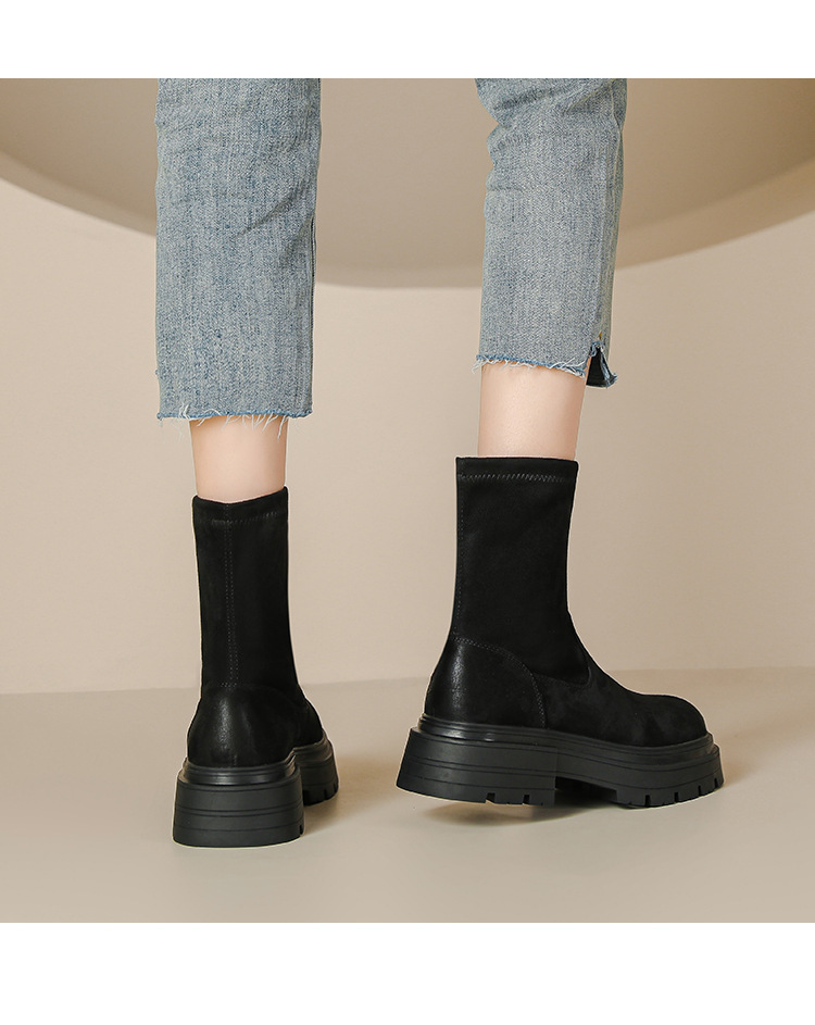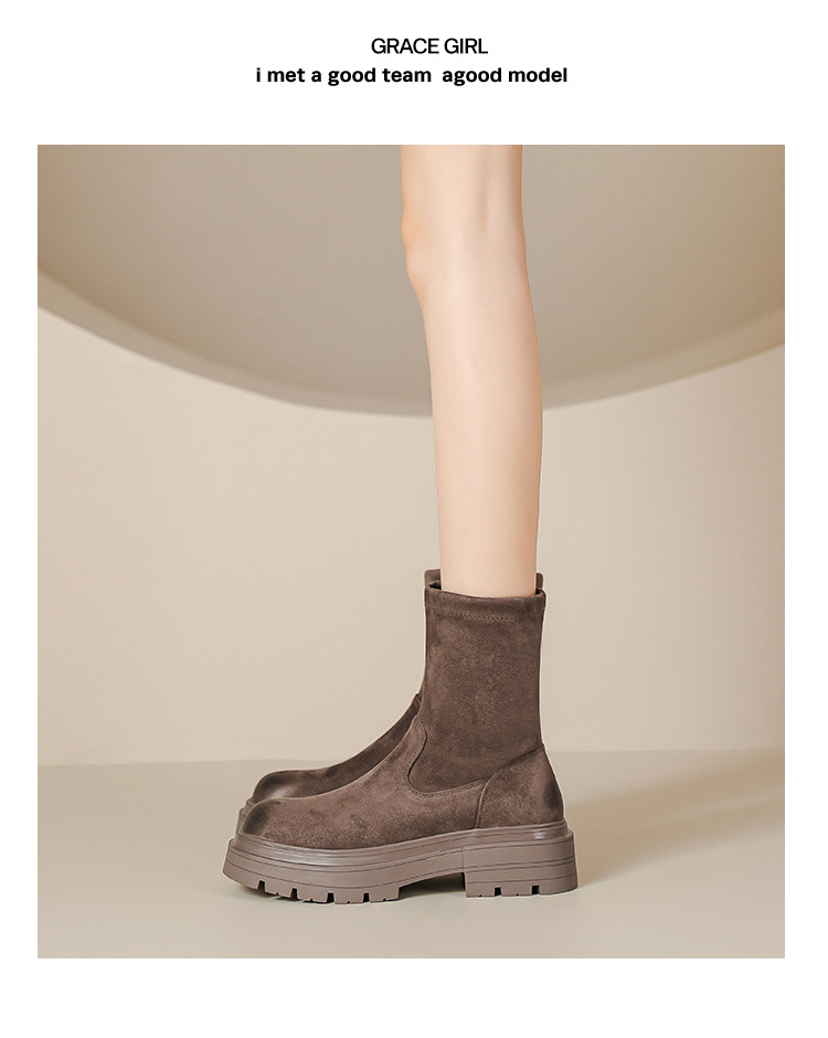 擦色短靴女秋冬新款英伦风复古弹力瘦瘦靴厚底短筒靴子绒面骑士靴