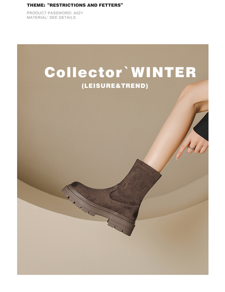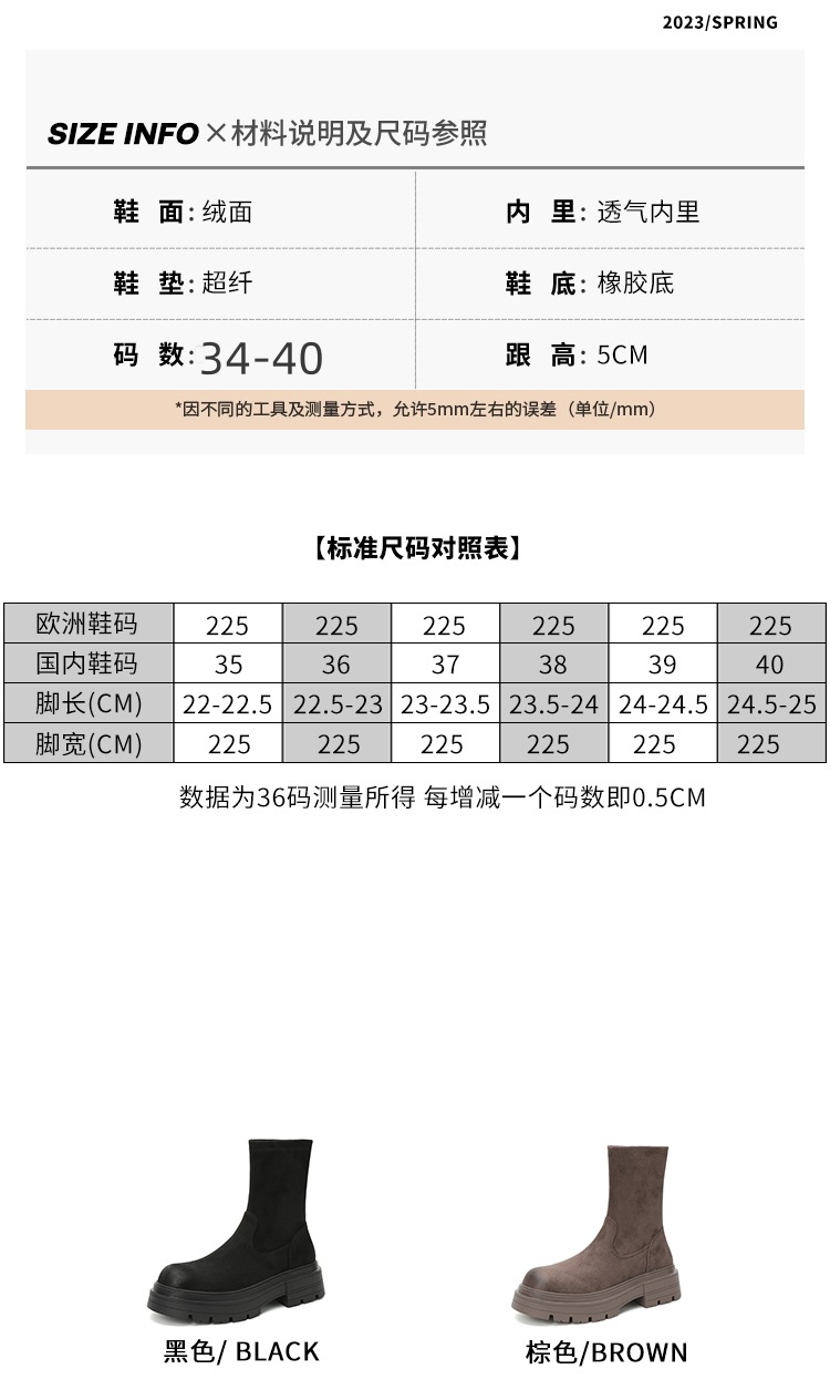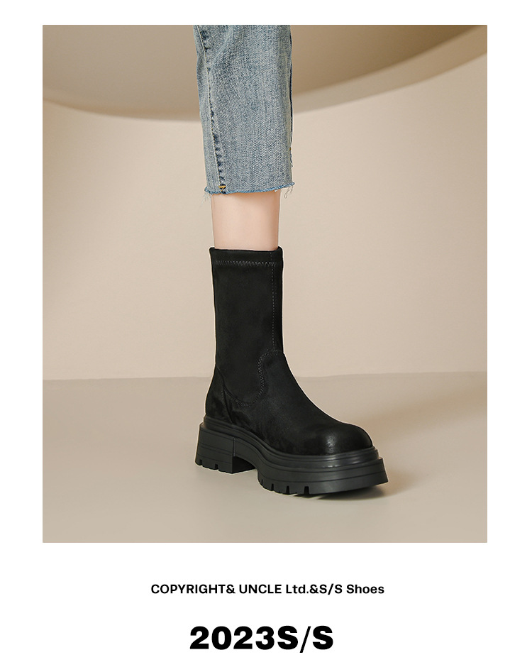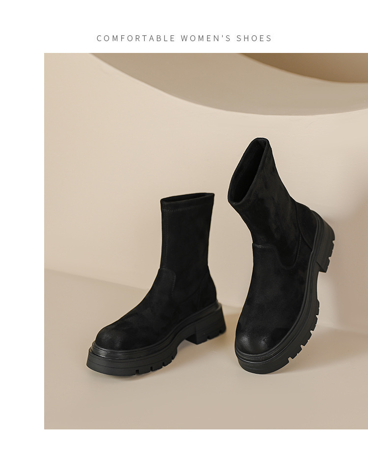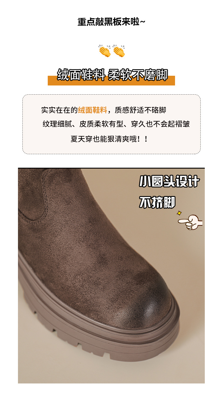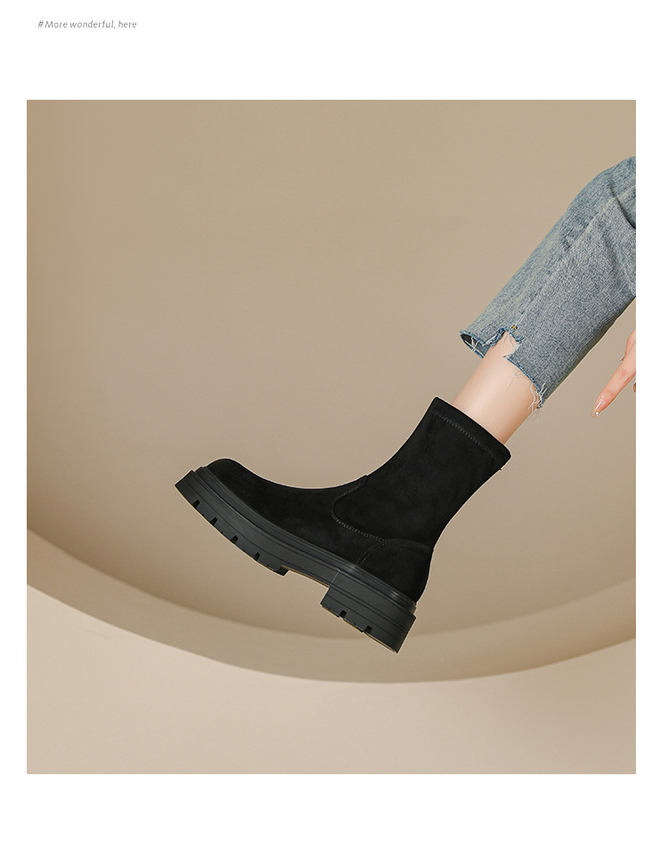 擦色短靴女秋冬新款英伦风复古弹力瘦瘦靴厚底短筒靴子绒面骑士靴