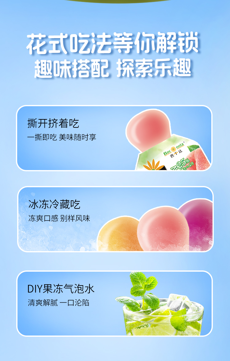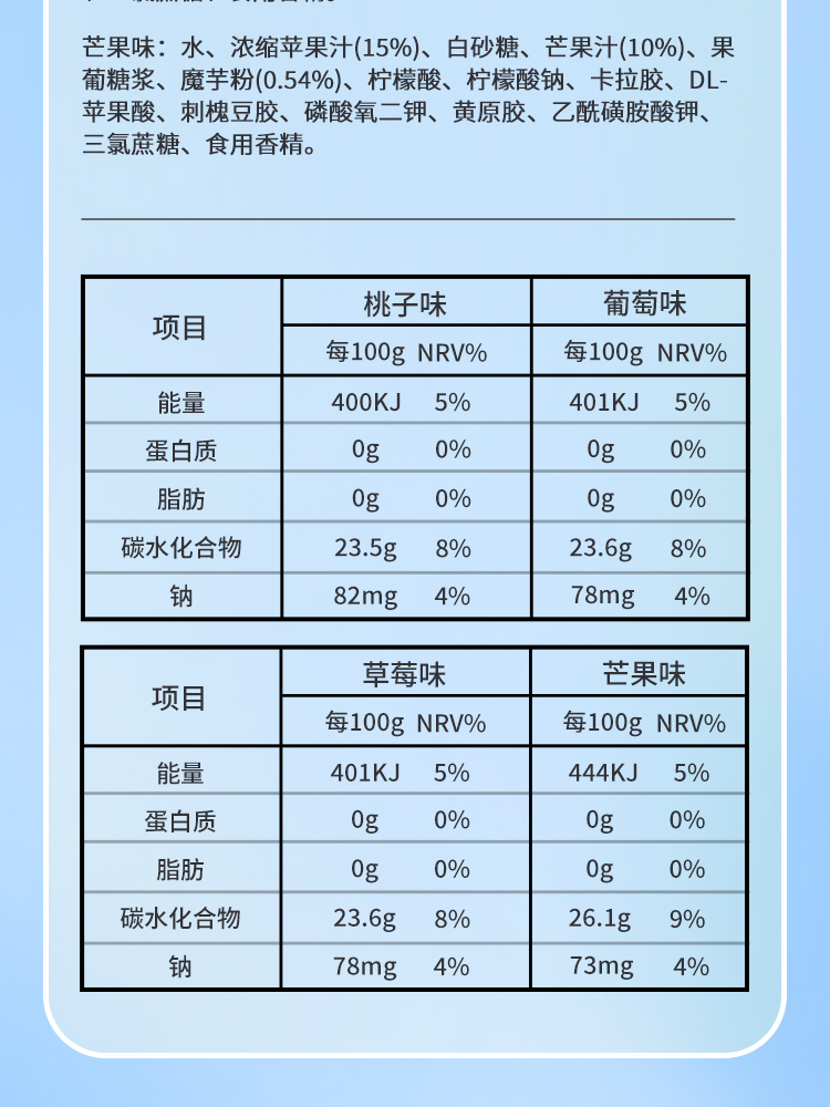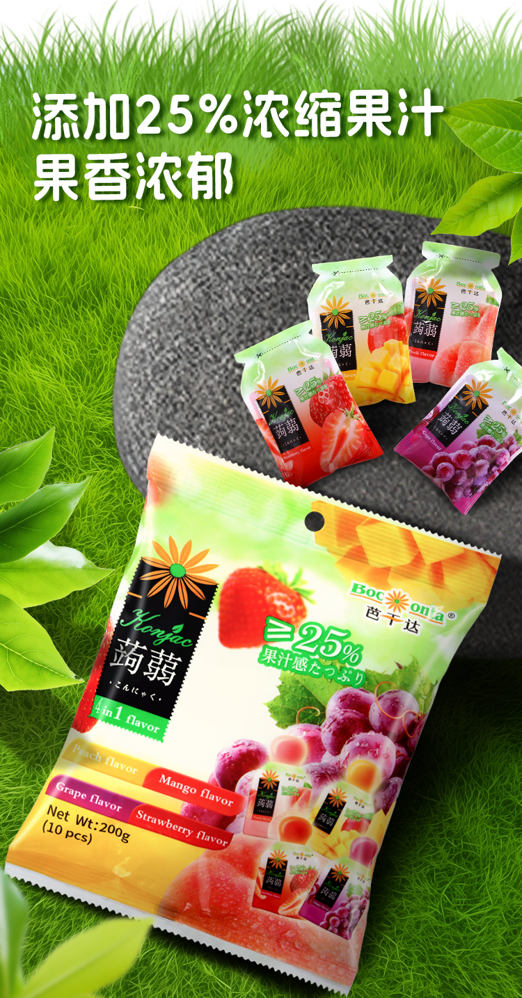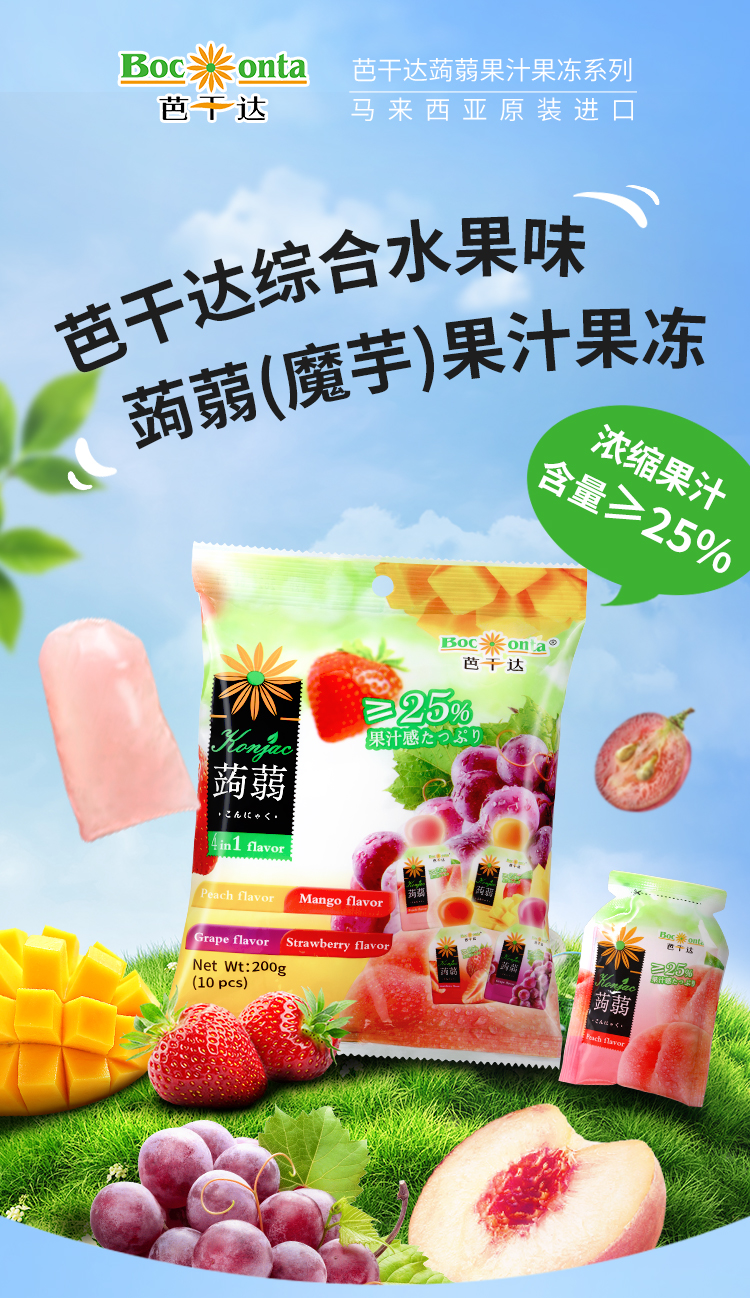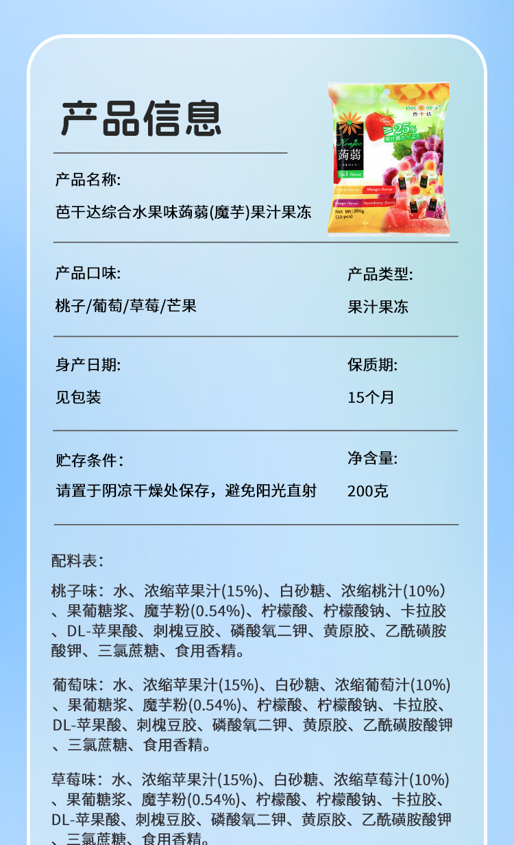 芭干达综合水果味蒟蒻(魔芋)果汁果冻200g/056047 桃子味+芒果味+葡萄味+草莓味清透爽口