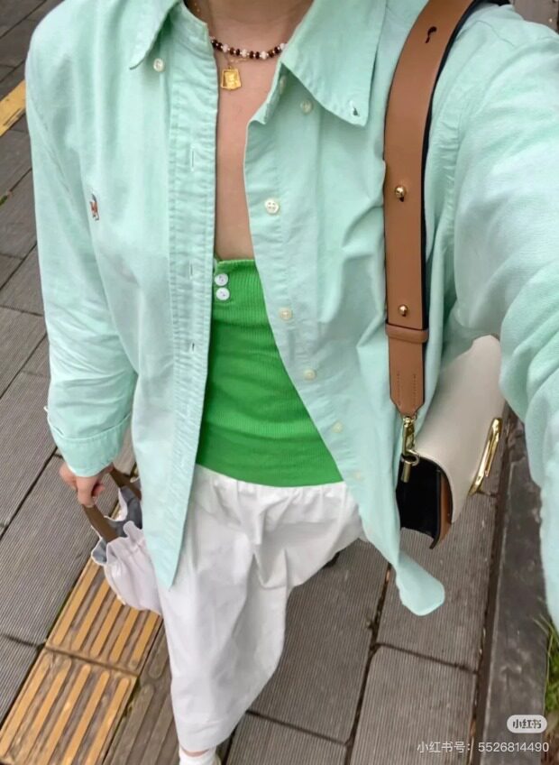 就是那种浅浅水水的薄荷绿 挺清透的 但不艳 一点都不发蓝