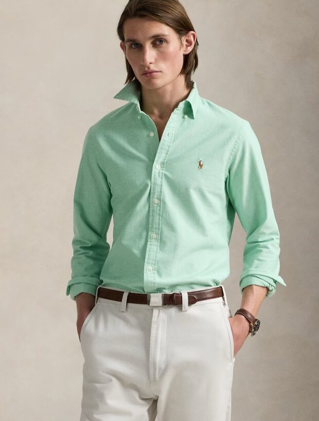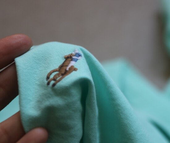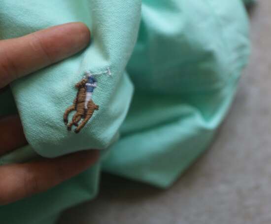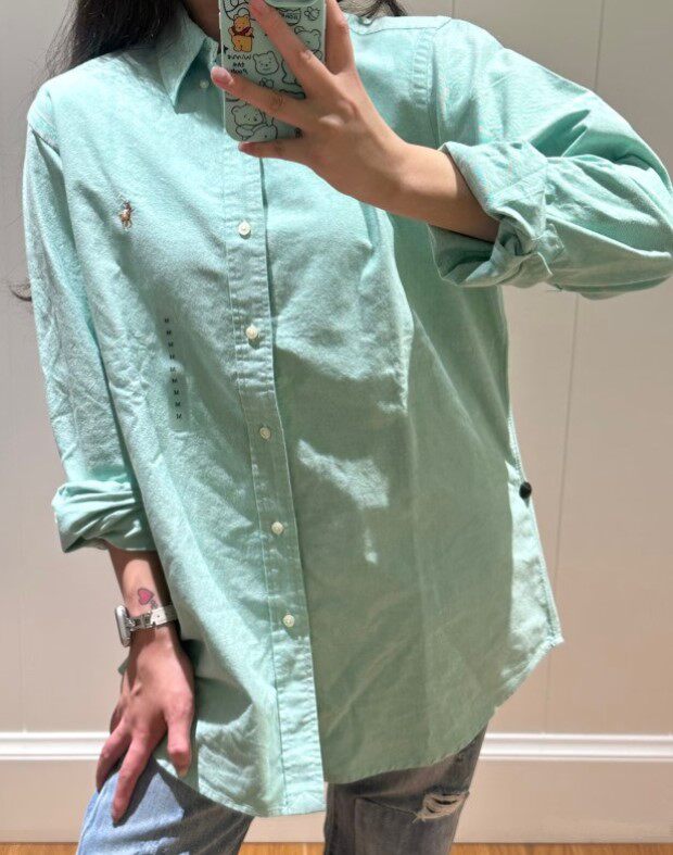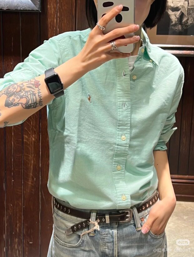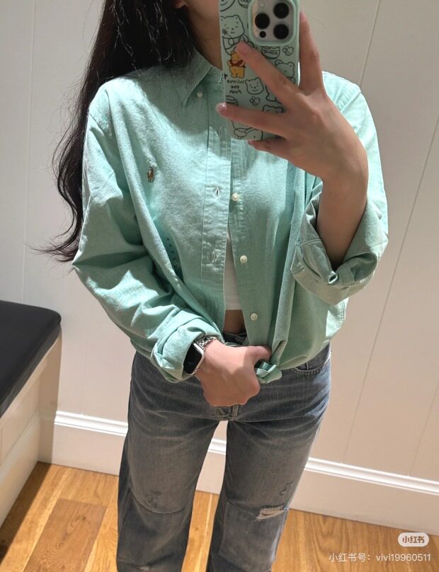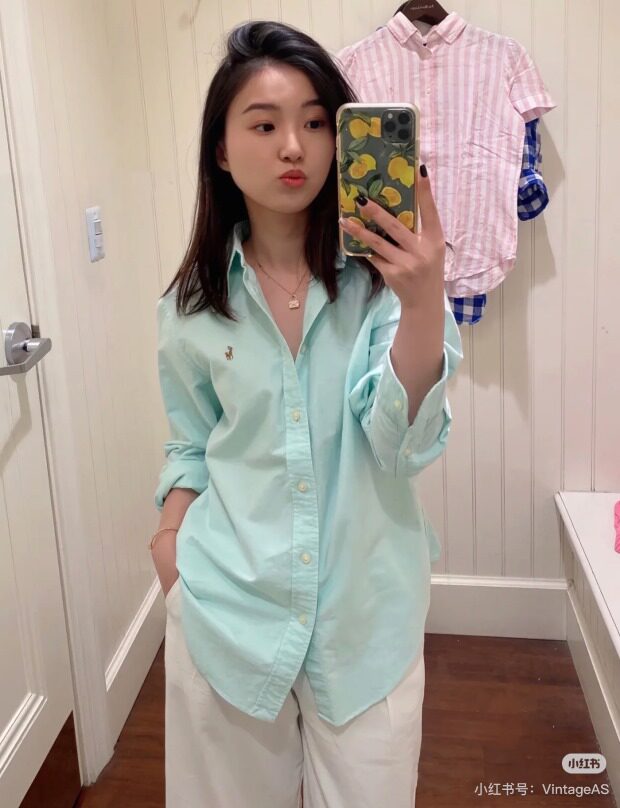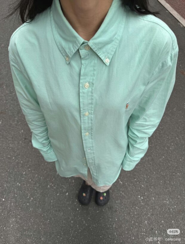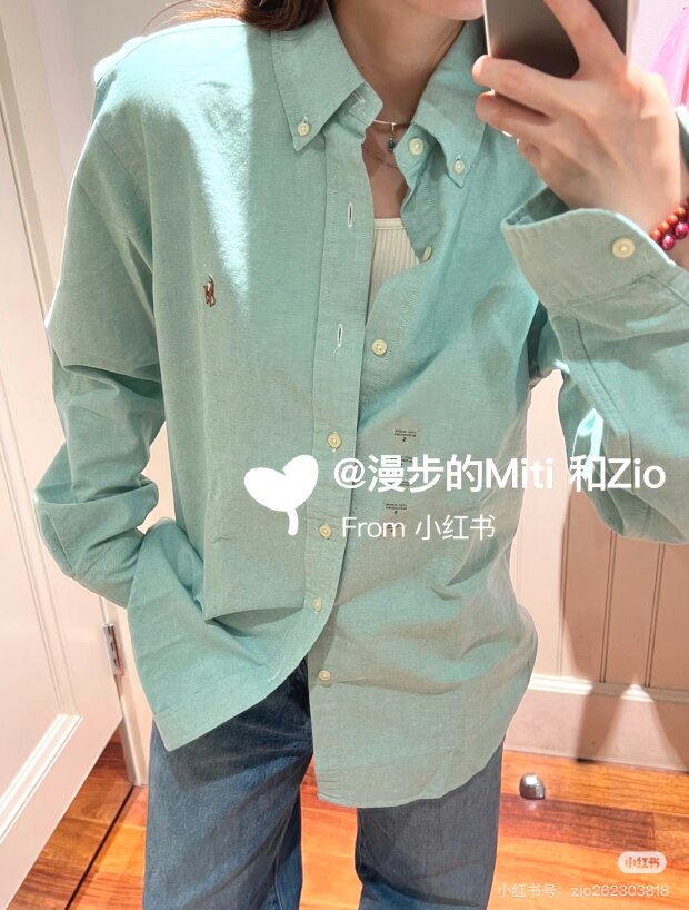 秀气的小领型 微微修身 圆弧下摆 前短后长 彩色小马标的