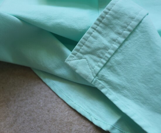 纯棉牛津纺 常规厚度 一点硬挺度 但不是硬硬厚厚的那种 整体都没有弹力
