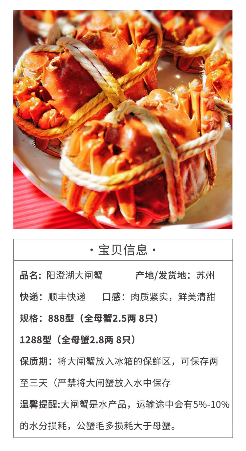 大家都很担心是否正宗,所以咱家螃蟹带认证扣,绝非过水蟹,正宗阳澄湖本地蟹。秋天蟹肥,只只爆膏,蟹黄流心,挡不住的诱惑,一口气能吃了好几个,又香又满足