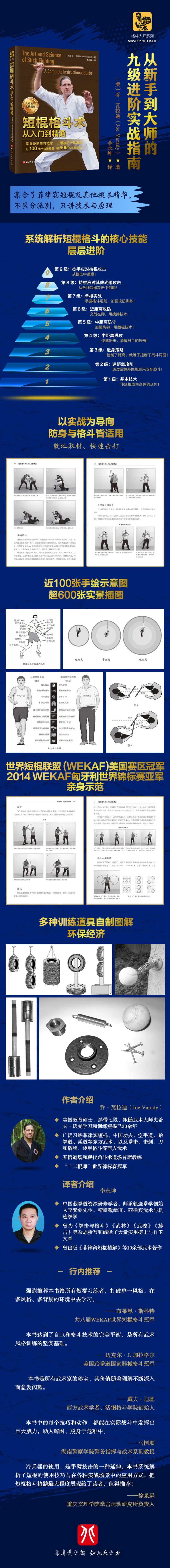 本书阐述的是一种独特的、非特定风格的短棍格斗方法。其内容经过精简,分为九个循序渐进的训练级别,能够使你快速而系统地学习、深度提高短棍格斗的所需技能。 无论你是刚刚开始练习短棍,还是已经有过多年练习,本书中都有适合你的内容。本书解释了短棍格斗的物理学原理,使其更易于读者理解。正如我的上一本书一样,本书以详细而系统的训练为特色,阐述了在学习和掌握短棍格斗技能时如何制作和使用特定的训练设备。