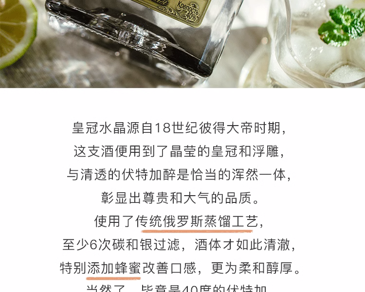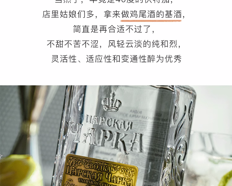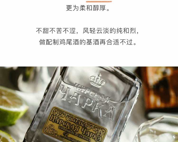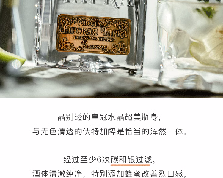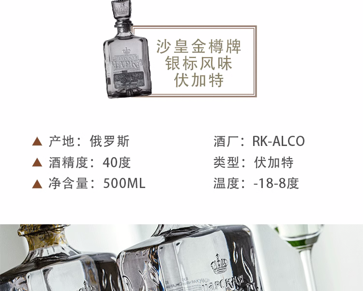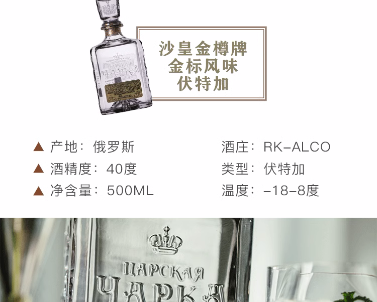 俄罗斯沙皇金樽牌金标/银标风味伏特加500ml/250ml 自带贵族气息色清透明 012703/012704/012705/012706