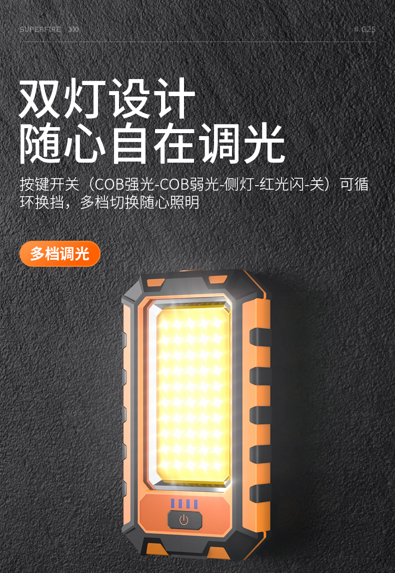 SUPERFIRE神火G25长续航超亮工作灯汽修维修机床超亮强光修车磁吸手电筒