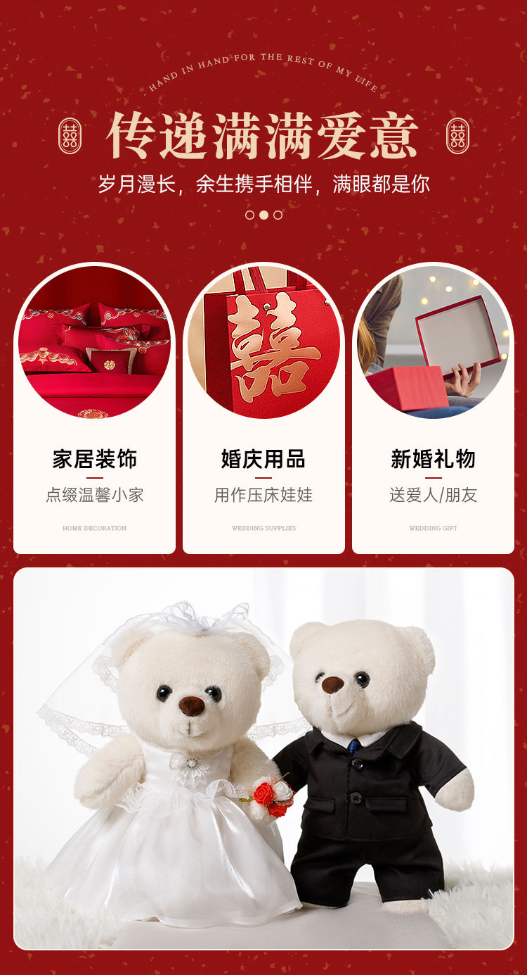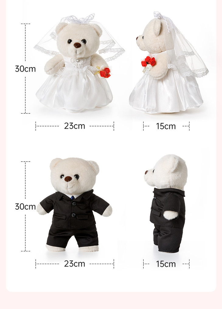 【实付满199送钥匙扣】【站姿新婚小熊】婚纱站姿毛绒小熊公仔订婚/结婚送礼情人节专属礼物创意玩偶婚庆用品