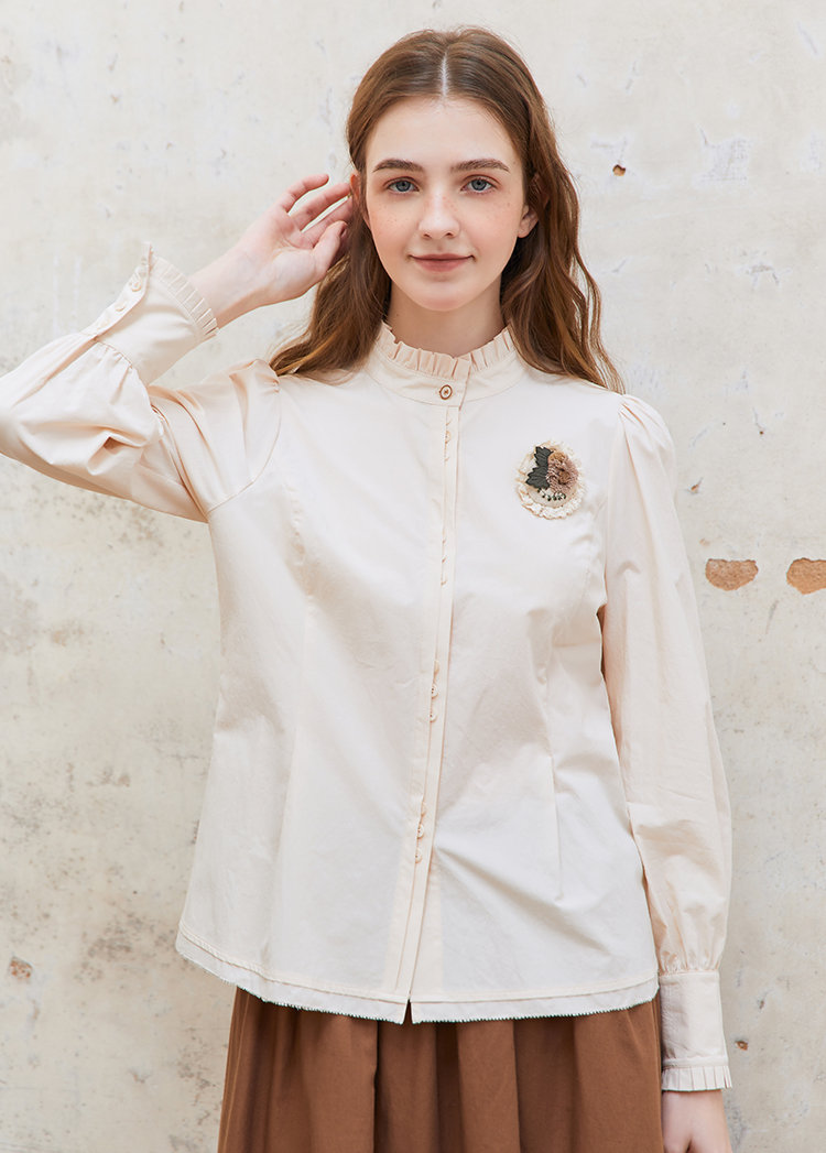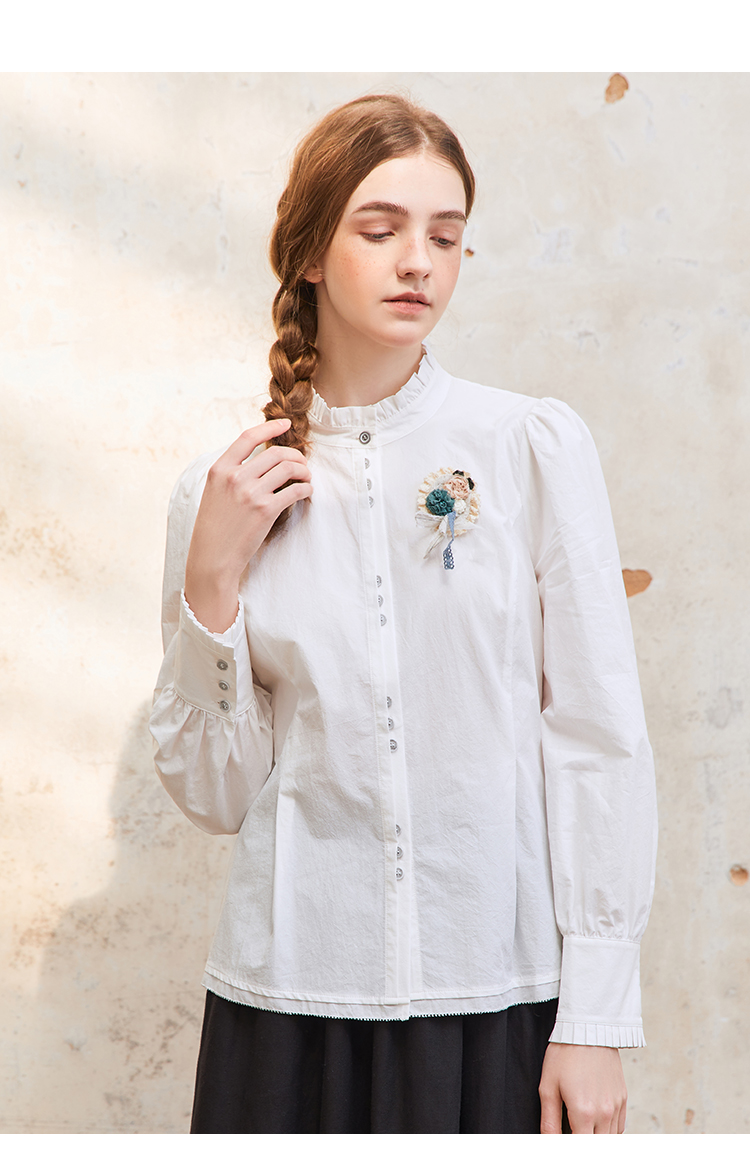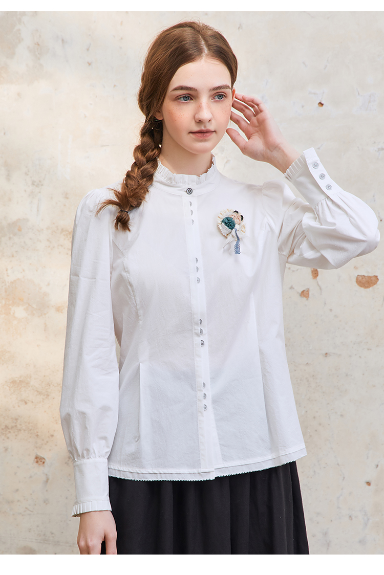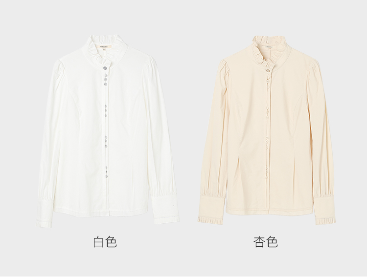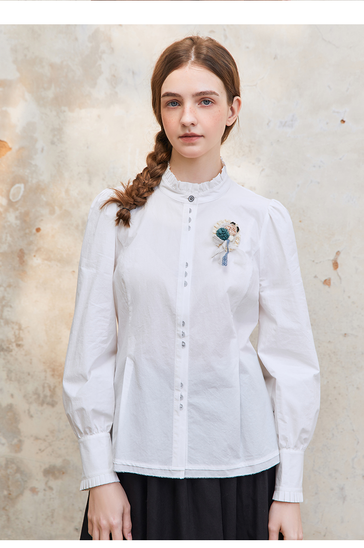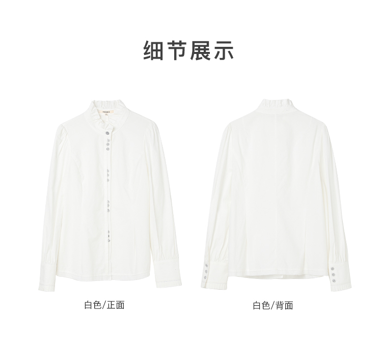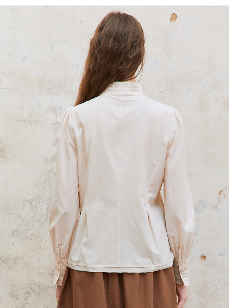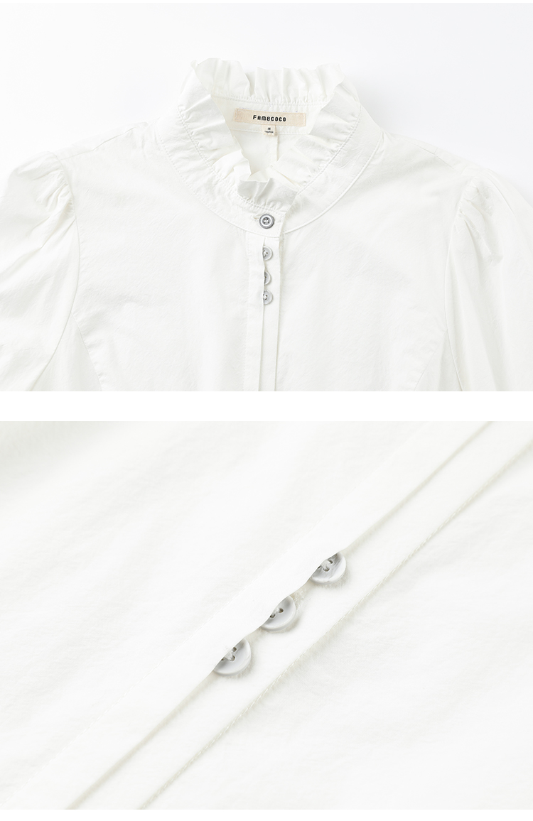 Famecoco纯棉木耳边立领长袖衬衫女士气质小众衬衣FAC1BH008